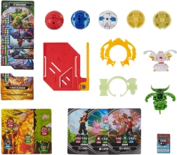 - 5 Bakugan Top, 5 Bakugan Bottom, 2 Power Ring, 2 Bakugan Card, 1 Bakugan Ripcord, 1 Bakugan Token, 3 kampkort, 5 karakterkort, 2 portalkort, 1 samlerliste