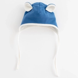 Praktisk forårs 2-delt sæt New Baby Sebastian indeholder en hue med for og et halstørklæde. Huen er formet ved ørerne, har bindebånd og sidder godt på hovedet. Halstørklædet kan lukkes i 2 størrelser. Det bløde materiale med bomuldsindhold er behageligt mod den sarte babyhud og virker legende takket være det søde bjørnemotiv. Ideelt til forår og efterår.