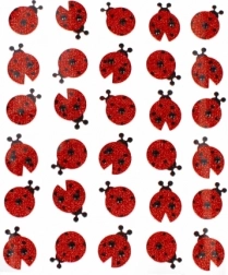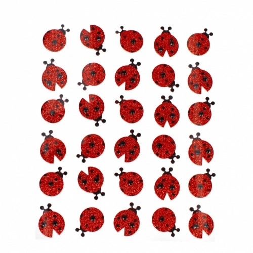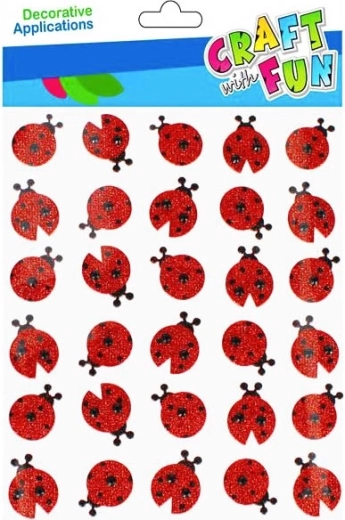 Gør kreativt arbejde og gaver lysere med et sæt klistermærker formet som mariehøner. Pakken indeholder 30 glitrende klistermærker, som er ideelle til at dekorere kort, album, dagbøger og indretningsdetaljer. Nem påføring, glitrende effekt og kreativ sjov for børn fra 3 år.