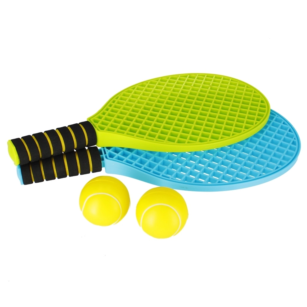 Takket være cushion grip-håndtaget ligger ketsjere behageligt i hånden og glider ikke, mens den holdbare plast sikrer lang levetid. Sættet er klar til øjeblikkelig leg – bare pak ud og begynd at slå til bolden.