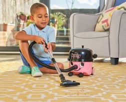 Børnestøvsugeren HETTY er en stilfuld hjælper i pink-sort med et smilende ansigt, som motiverer børn til at efterligne voksne og udvikler ansvarsfølelse og finmotorik. Takket være den skånsomme sugefunktion kan den opsuge små og lette partikler som polystyrenskugler, konfetti eller krummer.