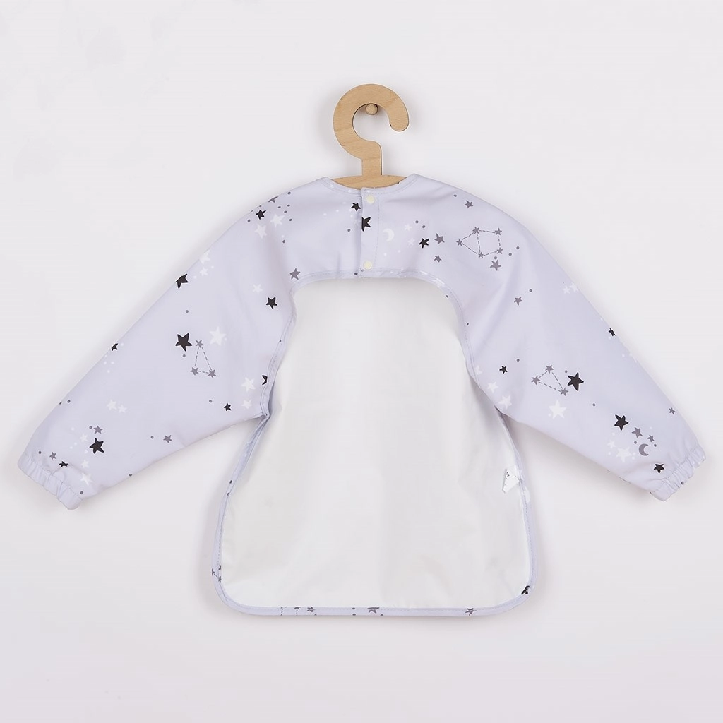 Lukning med 2 trykknapper sikrer en behagelig og sikker pasform omkring halsen, mens den bløde frontlomme opfanger krummer og dråber. De lange ærmer beskytter armene og er også perfekte til maling og kreativt arbejde. Stilfulde mønstre og attraktive farver glæder både forældre og børn.