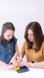Børn slår først huller i skabeloner og kort og fylder dem derefter med farverige dele. Der opstår legende mosaikker og dekorationer, som udvikler fantasien.
