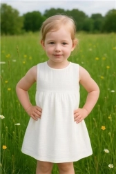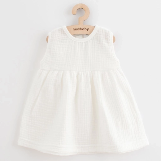 Oplev komfort og stil med sommerkjolen New Baby Elizabeth til babyer. Takket være A-snittet og det rynkede skørt virker kjolen yndefuld og luftig. Muselin af 100% bomuld er særligt åndbar, meget let og behagelig at røre ved, hvilket gør den ideel til varme dage og babyers sarte hud.