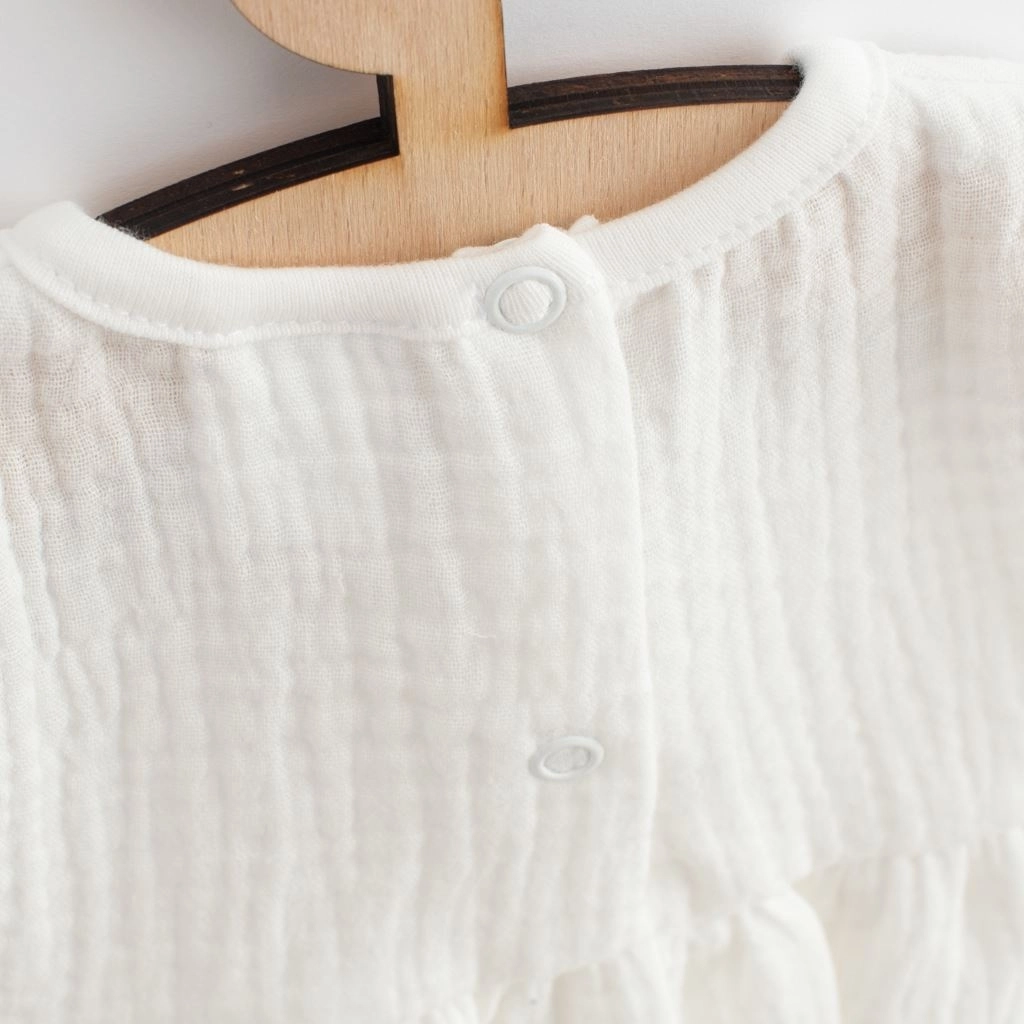 Kjolen New Baby Elizabeth er designet til maksimal komfort og stil på varme dage. Muselin hører til de mest sarte og mest åndbare stoffer – den lader huden ånde, mindsker risikoen for overophedning og er usædvanligt behagelig at røre ved. Takket være A-snittet falder kjolen smukt og begrænser ikke bevægelsen.