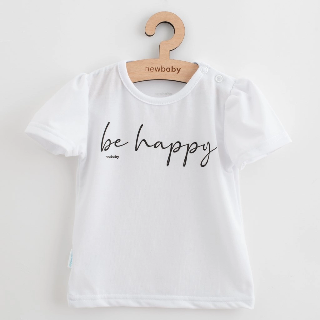 Det sommerlige pigesæt New Baby Be Happy er et ideelt valg til varme dage. T-shirten med korte ærmer prydes af et legende tryk med teksten “be happy”, som giver outfittet et muntert udtryk. Seleshortsene med justerbare bindestropper på skuldrene er dækket af et fint blomstermønster og sidder godt takket være de brede elastiske kanter, uden at stramme.
