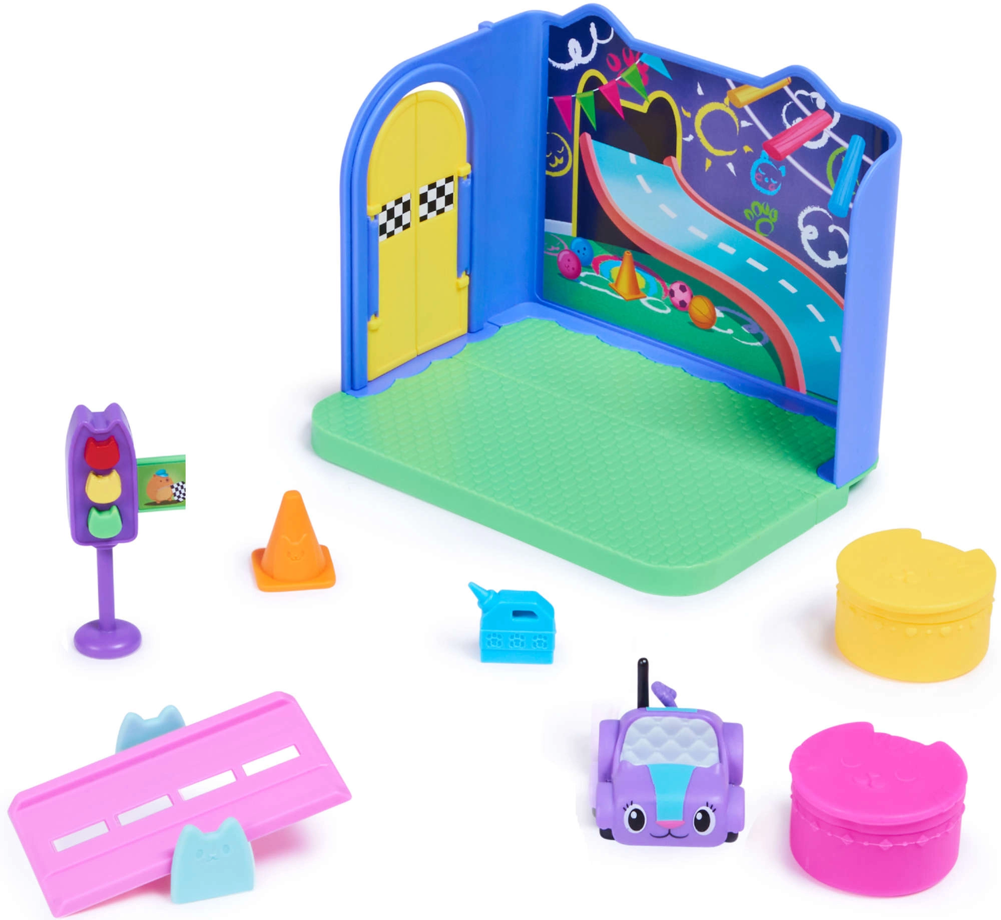 Oplev Kocifurs farverige værelse inspireret af den populære serie GABBY’S DOLLHOUSE. Børn vil elske at køre ned ad rampen, standse ved lyskrydset og åbne overraskelser i kasserne. Sættet styrker fantasi, finmotorik og skabelsen af egne historier.
