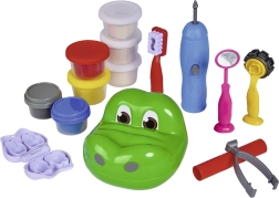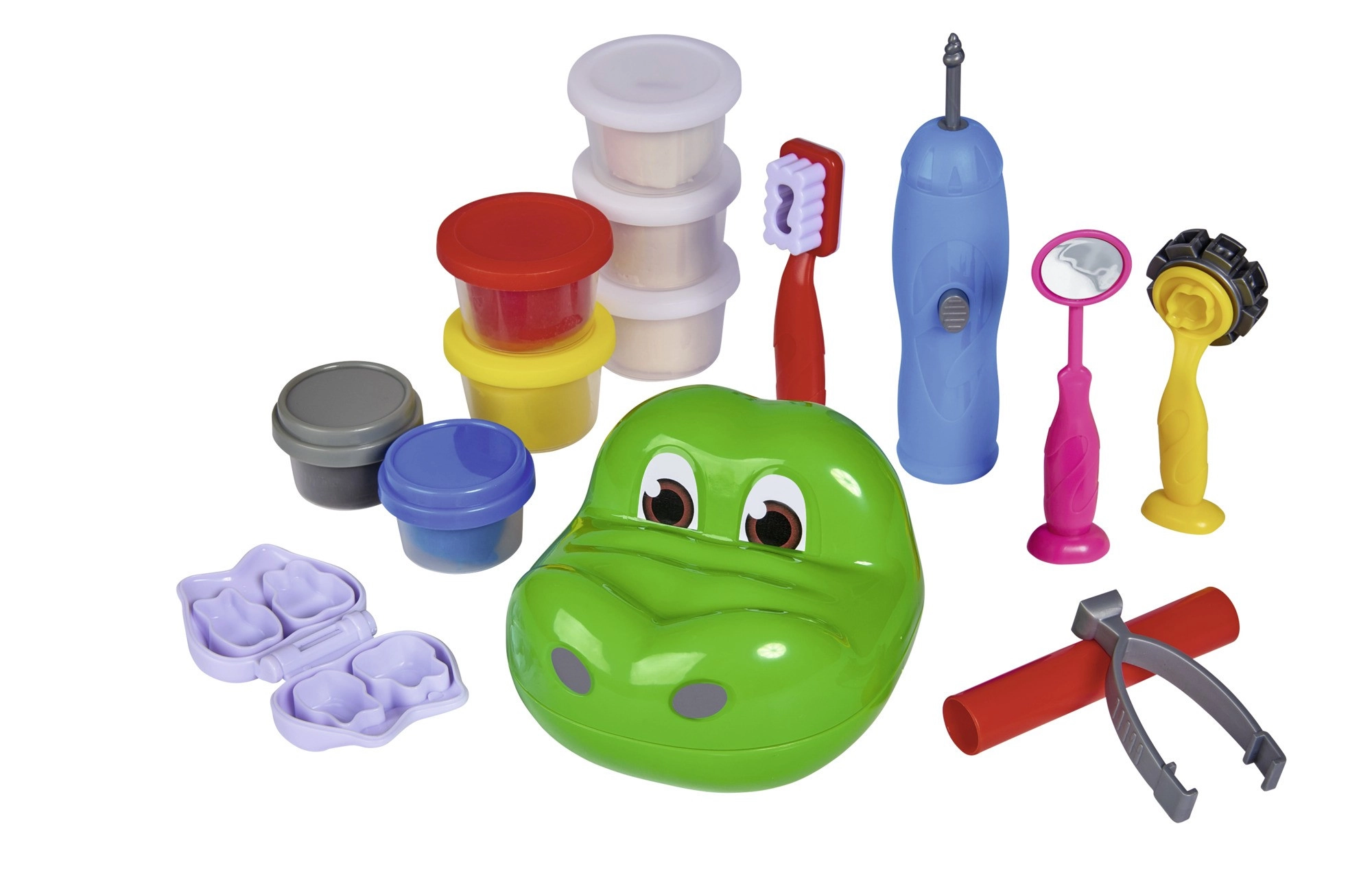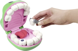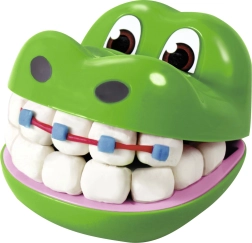 Dette tandlægesæt med krokodille tilbyder en realistisk, men legende simulering af tandbehandling. Med det omfattende tilbehør kan børn forme nye tænder af modellervoks, reparere huller, lave fyldninger og sætte farvede bøjler på. Der medfølger også tandbørste og spejl til at øve korrekt mundhygiejne.