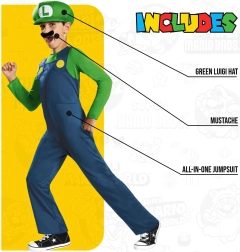 Forvandl dig på et øjeblik til den elskede helt Luigi fra Super Mario-universet. Dette officielt licenserede kostume giver behagelig pasform og et autentisk look, som børn vil sætte pris på til enhver leg og skolekarneval.