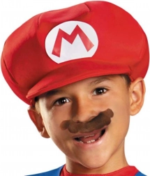 - Komplet sæt: rød-blå heldragt med gule knapper, kasket, moustache