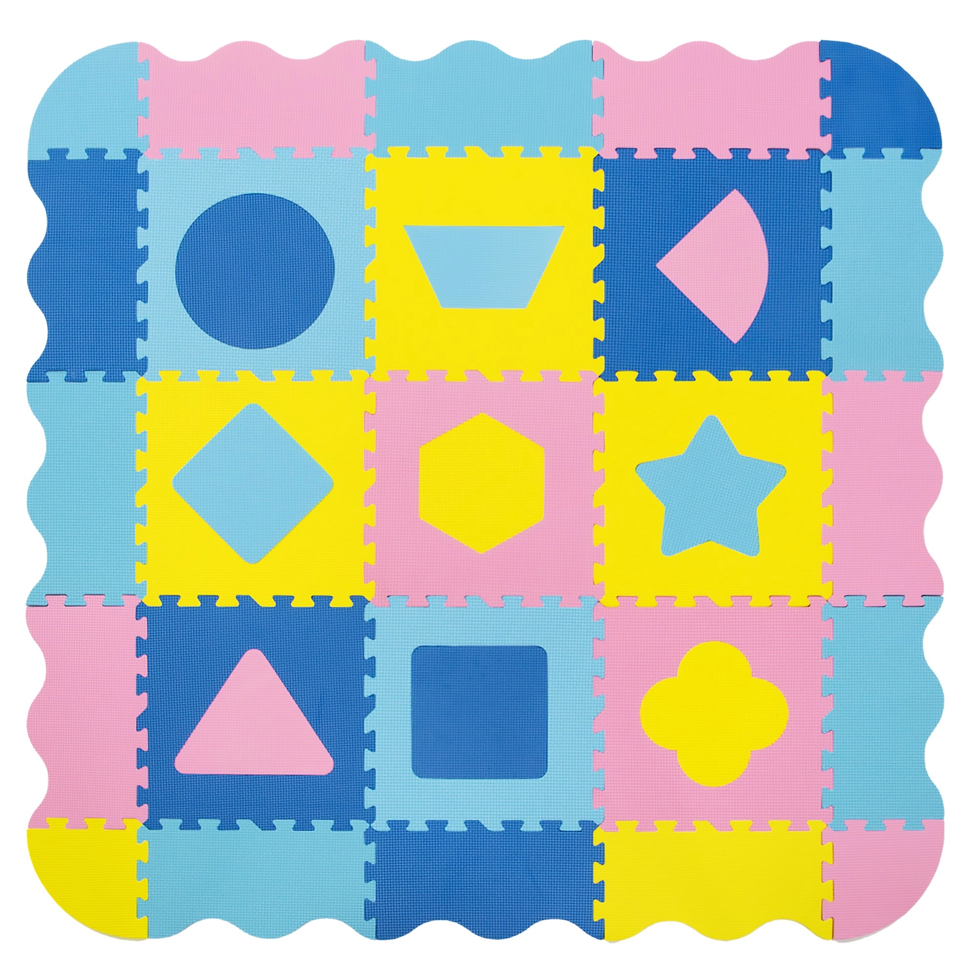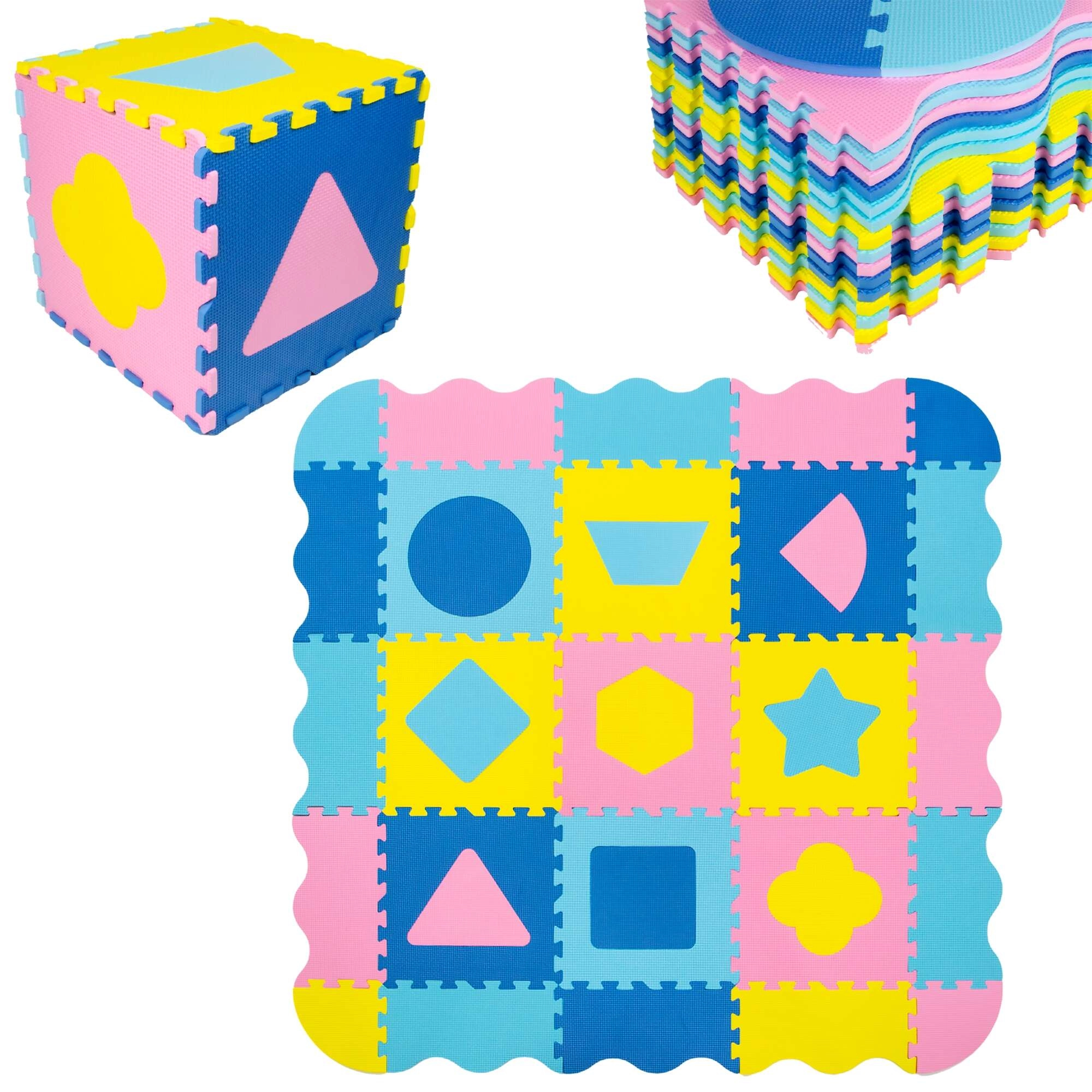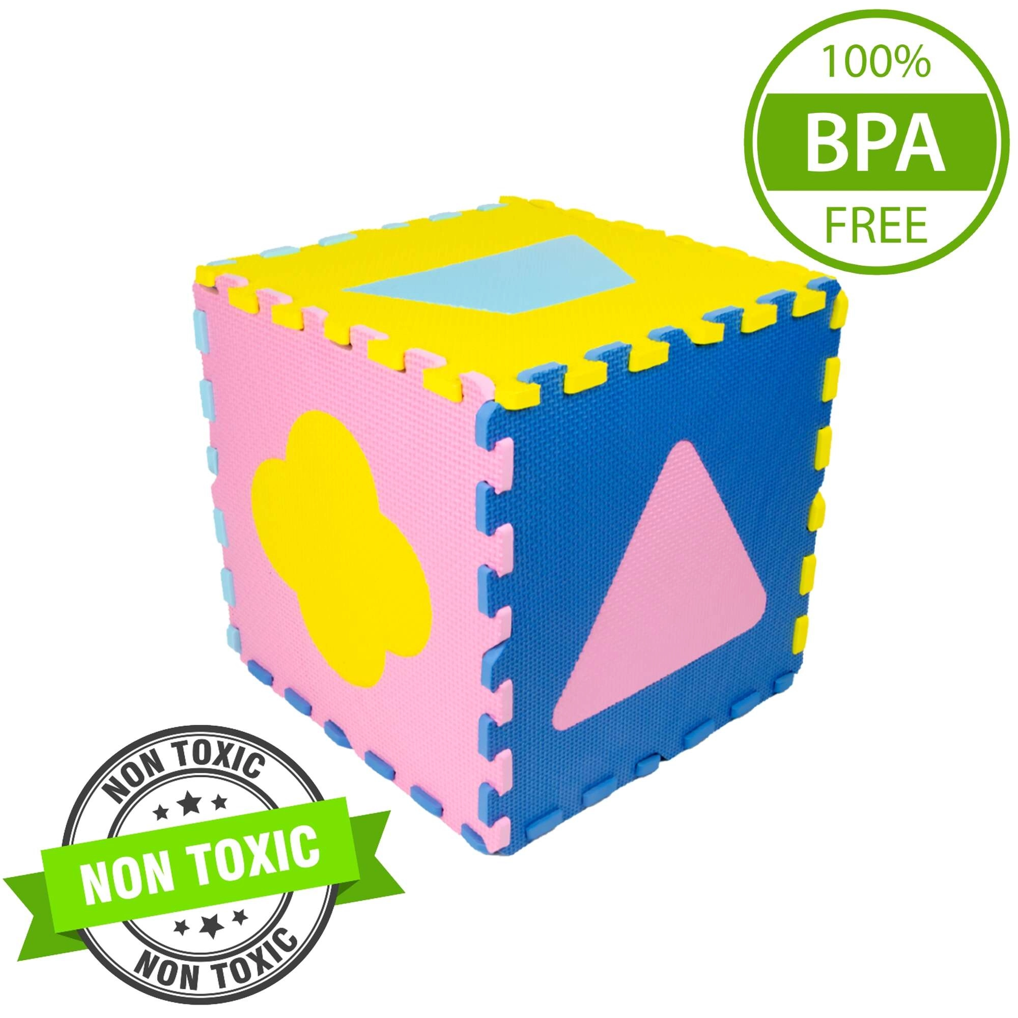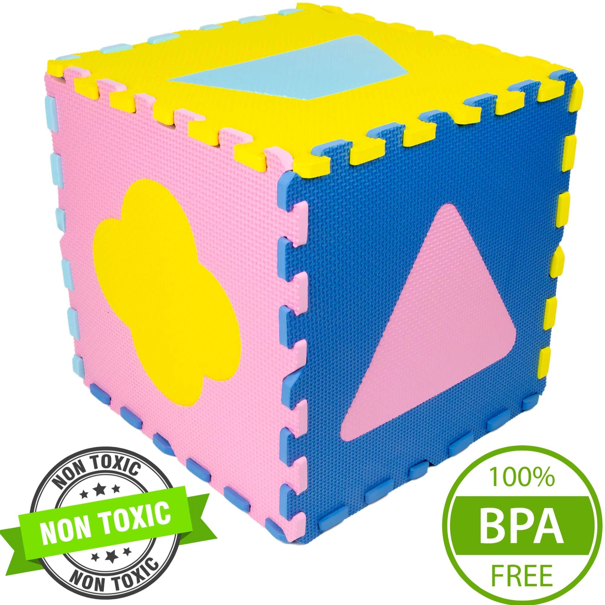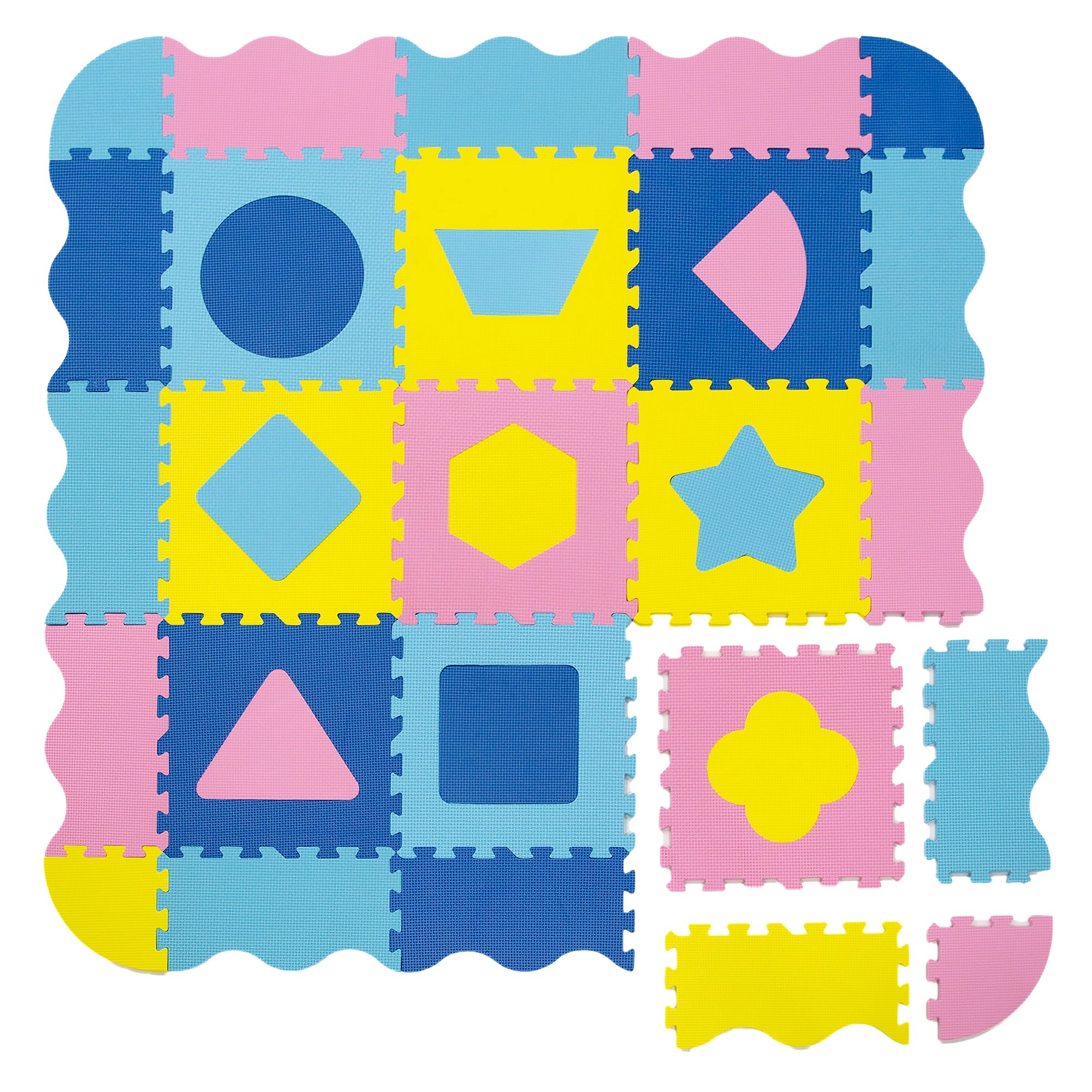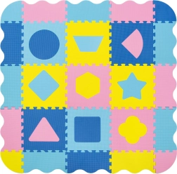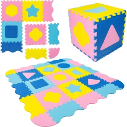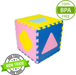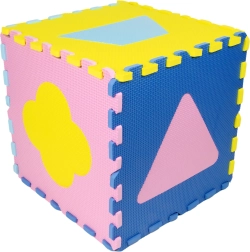 Lærende elementer i form af udtagelige figurer (cirkel, trekant, firkant, stjerne m.fl.) udvikler finmotorik samt læring af former og farver. Delene kan nemt skilles ad og opbevares – pladsbesparende. For en større flade kan flere sæt af samme model forbindes.