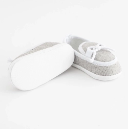 Disse elegante tøffelsko i mokkasin-stil fra New Baby imponerer med et moderne look og praktisk udførelse. Takket være den tætsiddende pasform bliver de godt på foden, og den rummelige indvendige plads giver naturlig udvikling af tæer og muskler. Den bløde og tynde PVC-ydersål uden BPA er ideel til kravlen, siddende leg og de første forsøg på at stå – ikke til gang.