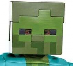 Kubiske skulderformer og en blokmaske forvandler barnet til den legendariske Minecraft-zombie på et øjeblik.