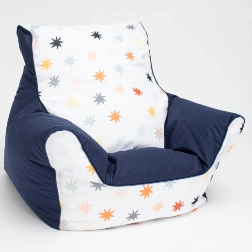 Den sikre dobbellags konstruktion uden hårde elementer beskytter selv mindre børn, mens den lave vægt gør det nemt at flytte stolen rundt i hjemmet. Den elegante blå farve fuldender indretningen på børneværelset og bliver et yndlingssted til daglig hvile.