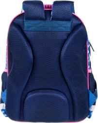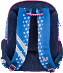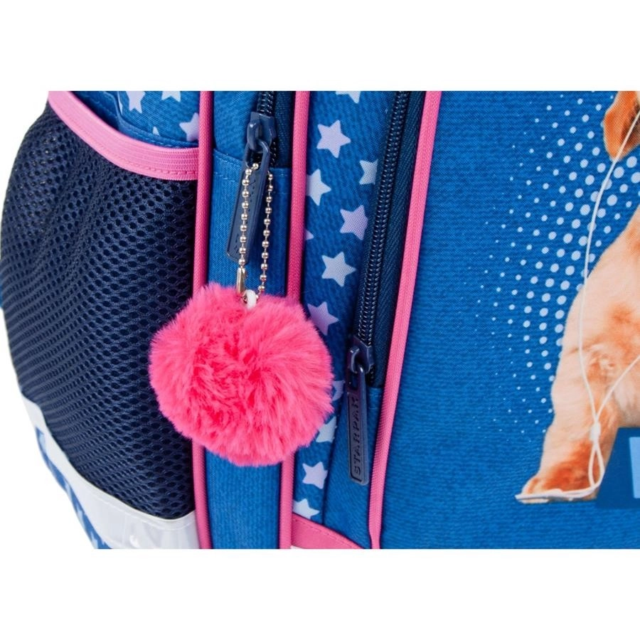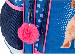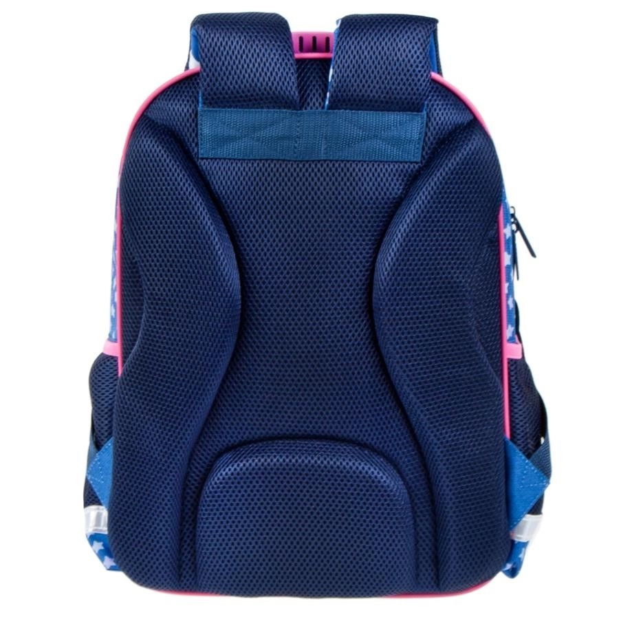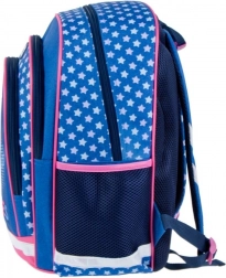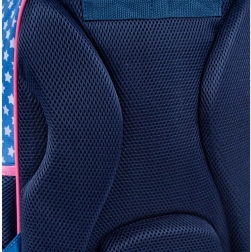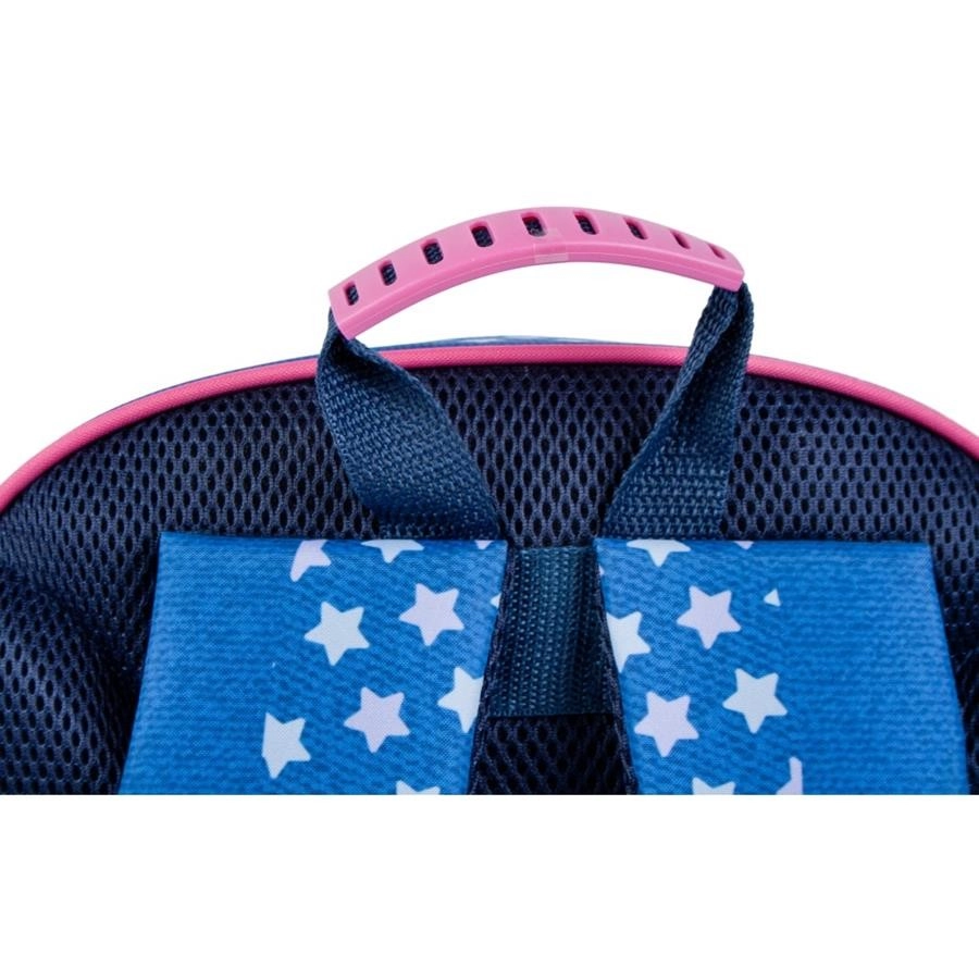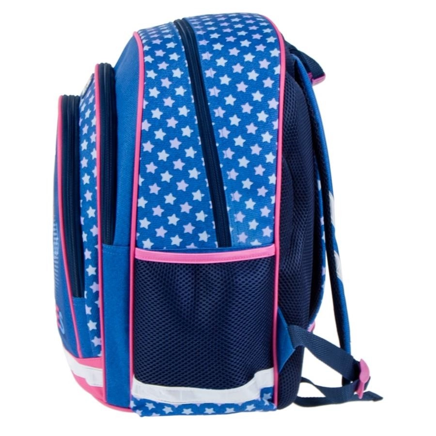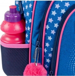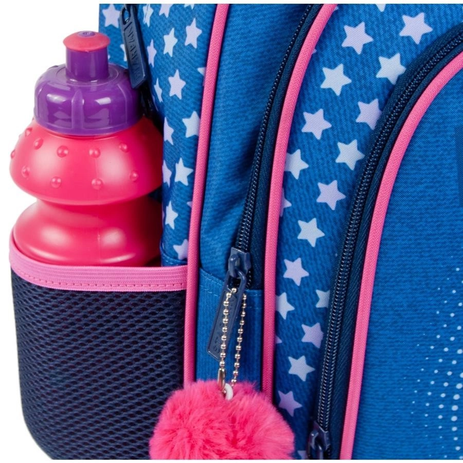 Denne børnetaske i blå‑rosa kombination imponerer med et legende stjernedesign og begejstrer også med sin funktionalitet. Hovedrummet rummer bøger, mapper og madpakke, mens to forlommer gør det nemt at opbevare småting overskueligt. De netbeklædte sidelommer bærer sikkert en drikkeflaske, så alt nødvendigt altid er lige ved hånden.