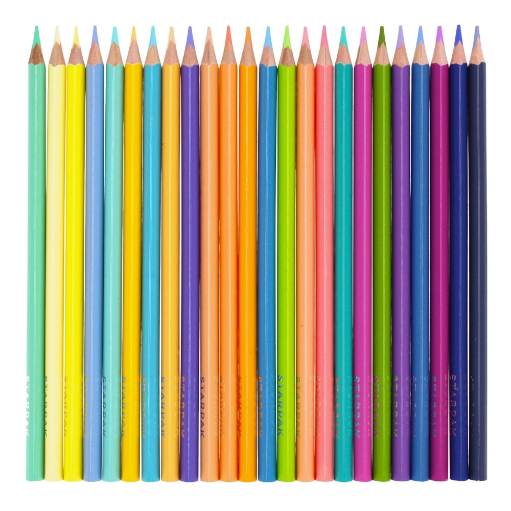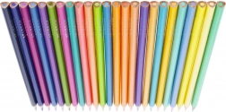 Dette sæt med 24 farveblyanter i populære pasteltone styrker kreativiteten hos både børn og voksne. Takket være den trekantede ergonomi ligger blyanterne behageligt i hånden, understøtter korrekt greb og reducerer håndtræthed ved længere tids tegning.