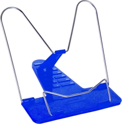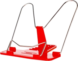 Praktisk holder til bøger og dokumenter med flertrins justering af hældning for behagelig læsning uden at holde i hånden. Let og sammenklappelig konstruktion med metalarme holder bog, notesbog eller tablet stabilt på plads. Fås i to farver – rød og blå. Ideel til skrivebordet i skolen, på kontoret og derhjemme.
