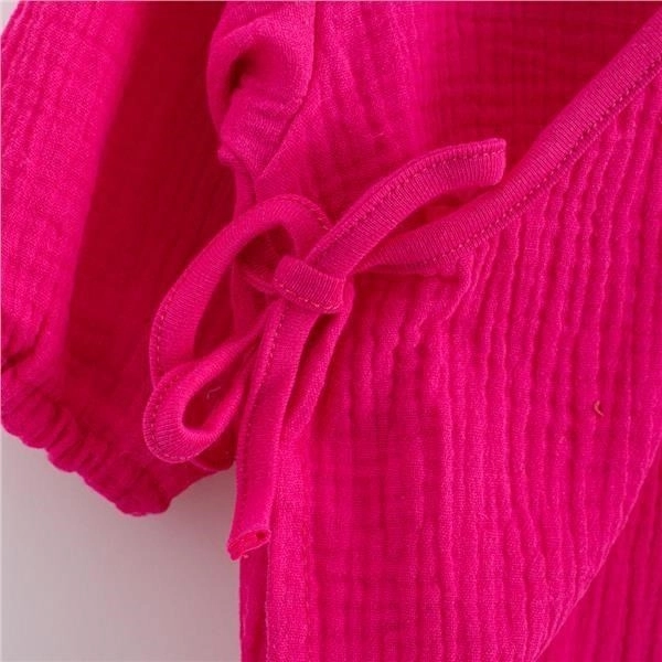Musselin anses for at være et af de mest delikate og rene stoffer. Den er holdbar, tåler gentagen vask og bliver med tiden endnu blødere og mere behagelig at røre ved. Denne kjole er derfor et fremragende valg til sart børnehud.