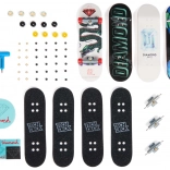 - 1 samlet fingerboard, 3 boards til samling, 12 hjul, 6 trucks, 24 skruer, 12 møtrikker, 1 nøgle, 2 stickers