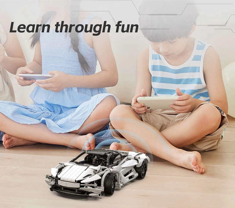 Appen tilbyder hele 4 styringstilstande (remote control, scratch programming, gyroscope control, path mode), så både børn og voksne kan prøve intuitiv og programmerbar styring. Gummidæk sikrer godt vejgreb på forskellige overflader, og den åbnbare motorhjelm understreger byggesættets tekniske karakter.