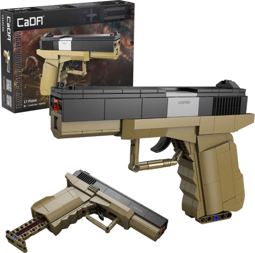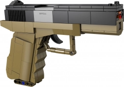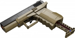 Dette detaljerede byggesæt imponerer med et gennemarbejdet udseende i sort-brun finish og en smart konstruktion for flydende legescenarier. Takket være bevægelseselementer som aftrækker og slæde får du en realistisk følelse ved både byggeri og leg. Projektilerne lades direkte i løbet, og våbnet har et aftageligt magasin.