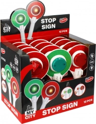 Denne politistopskive med lyssignal vil glæde hvert barn, der elsker rolleleg. Den lyser grønt på den ene side og rødt på den anden, hvilket muliggør realistisk ”trafikstyring” under legen. Takket være de kompakte mål ligger den godt i hånden og er velegnet til børn fra 3 år.