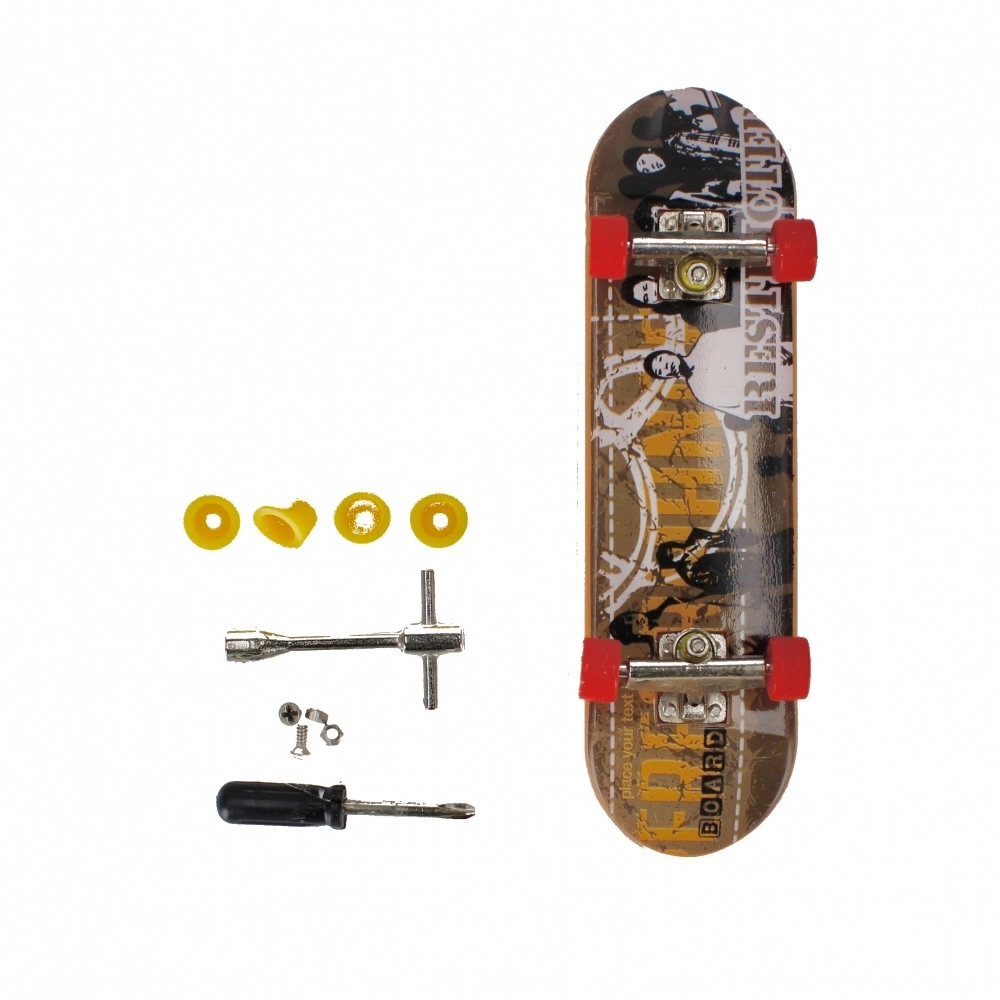 Pakken indeholder rigt tilbehør, der gør det nemt for børn at vedligeholde og tilpasse individuelt. Hjulene kan nemt udskiftes, og med de medfølgende skruetrækkere er montering legende let. Mini-skateboardet fås i fire attraktive designs og farver, så alle kan finde deres stil.