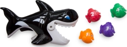 Den sjove vandleg fra SwimWays med en spækhugger og fire små fisk giver børn fra 2 år timevis af glæde i badekarret og i poolen. Når du trykker på aftrækkeren, åbner munden sig og “sluger” de flydende fisk, hvilket støtter finmotorik, farvelære og tælletræning. Det robuste design og de klare farver sikrer bekymringsfri vandsjov både hjemme og på ferien.