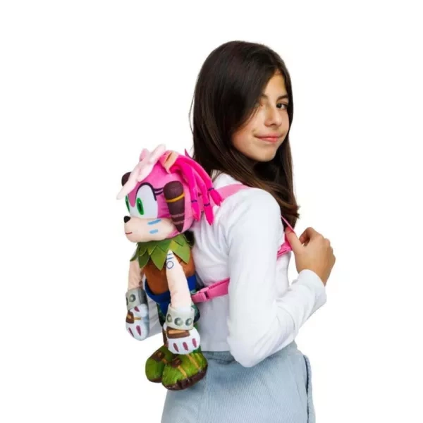Plysbagrugzakken Amy Rose fra det populære univers SONIC PRIME vil glæde alle små fans. Den kombinerer funktionen af en lille rygsæk og et blødt legetøj – ideel til gåture, børnehave og rejser. Takket være den kompakte størrelse på ca. 43 cm er den behagelig at bære og fungerer samtidig som en krammeven.