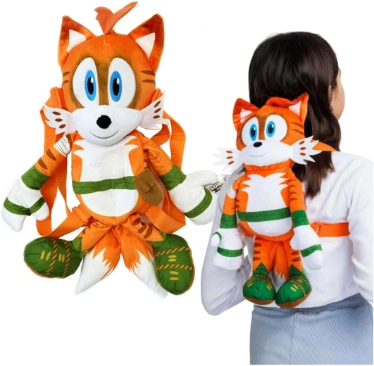 Oplev en børnerygsæk, der også er en krammevenlig legekammerat. Den plysbetrukne rygsæk Tails glæder fans af SONIC med sin bløde kvalitet, markante blå øjne og ikoniske detaljer. Den kompakte størrelse gør den ideel til gåture, børnehave og udflugter.