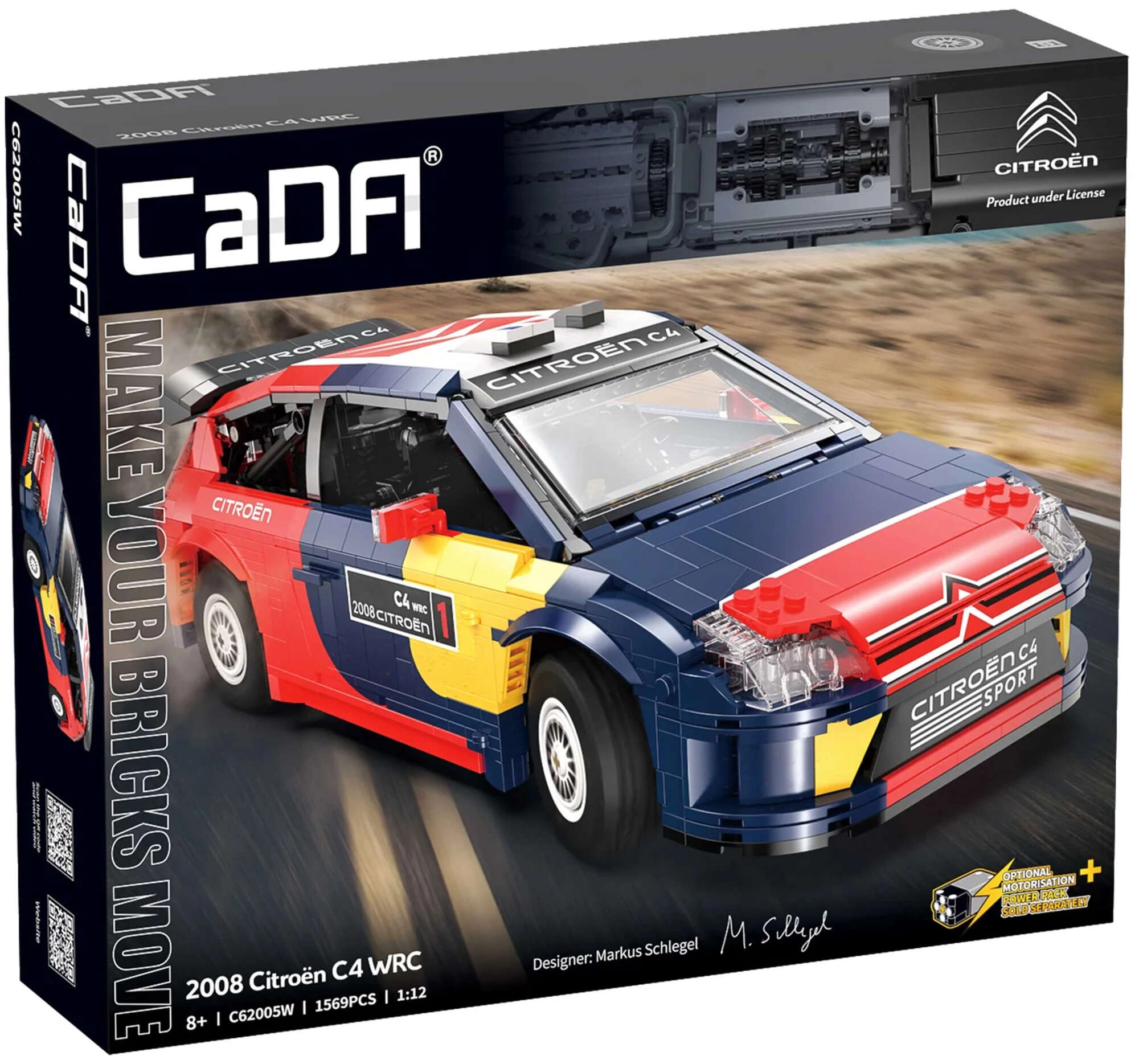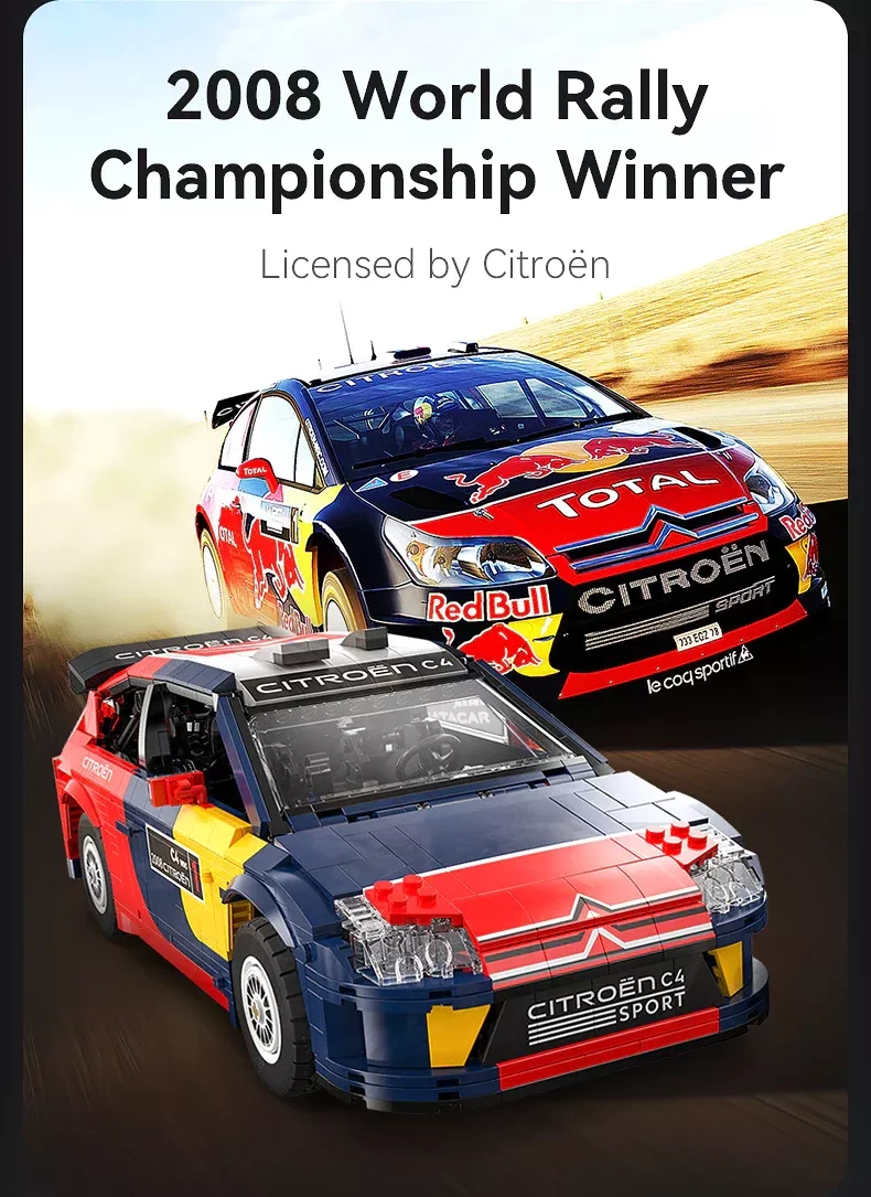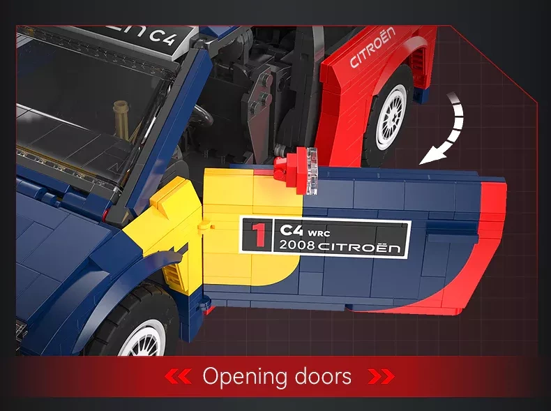 Nyd den præcise byggeproces og det realistiske design af den legendariske CITROËN C4 WRC (2008) med licens i skala 1:12. Modellen fra CADA udmærker sig ved en gennemtænkt konstruktion med mange bevægelige dele og autentiske detaljer i både eksteriør og interiør, inklusive farverigt karrosseri med rallygrafik, sæder og rat.