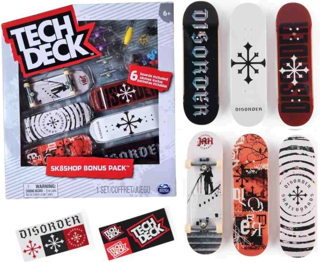 Opdag de legendariske TECH DECK fingerboards i det omfattende sæt Sk8Shop 6 Pack Disorder med tilbehør. Byg dine egne mini-skateboards fra bunden, træn fingertricks og forbedr din koordinering. Ideelt til både begyndere og samlere – timevis af underholdning og uendelige kombinationsmuligheder.