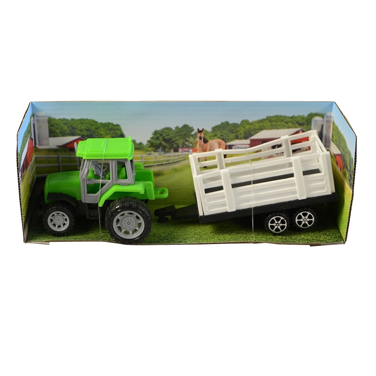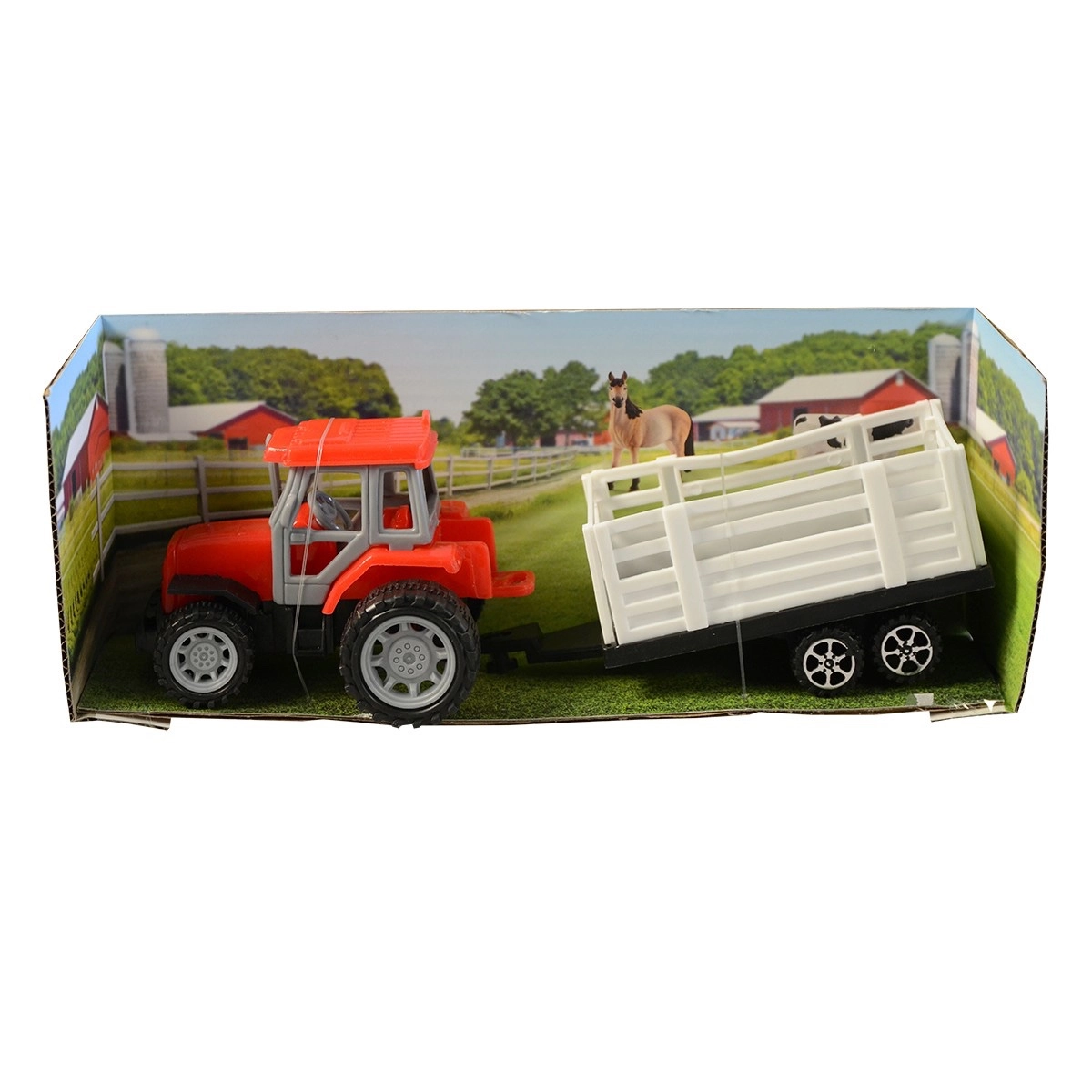 Oplev en realistisk traktor med trailer og friktionsmotor, der giver børn timevis af kreativ leg. Træk den blot hen over underlaget, og traktoren kører jævnt afsted – uden batterier. De kompakte mål passer perfekt i en barnehånd, og legetøjet er ideelt både hjemme og på farten.