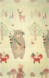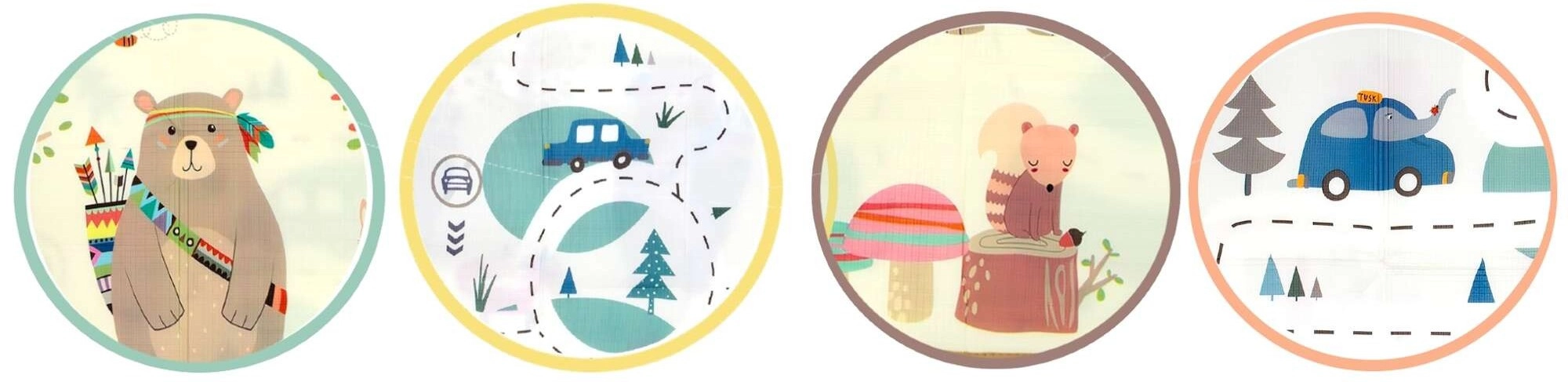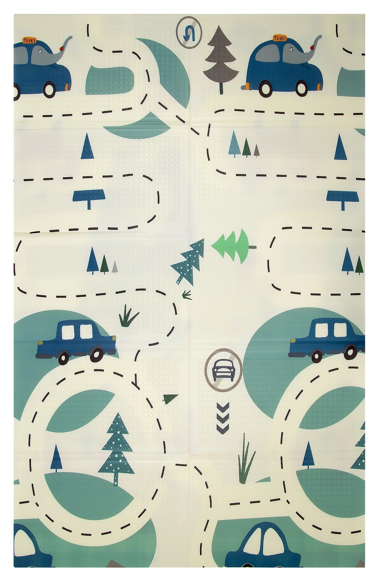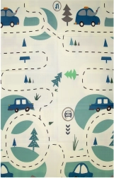 Den ene side med søde dyr til børneværelset, den anden med vej og biler til leg med legebiler. Matcher nemt indretning og barnets humør.