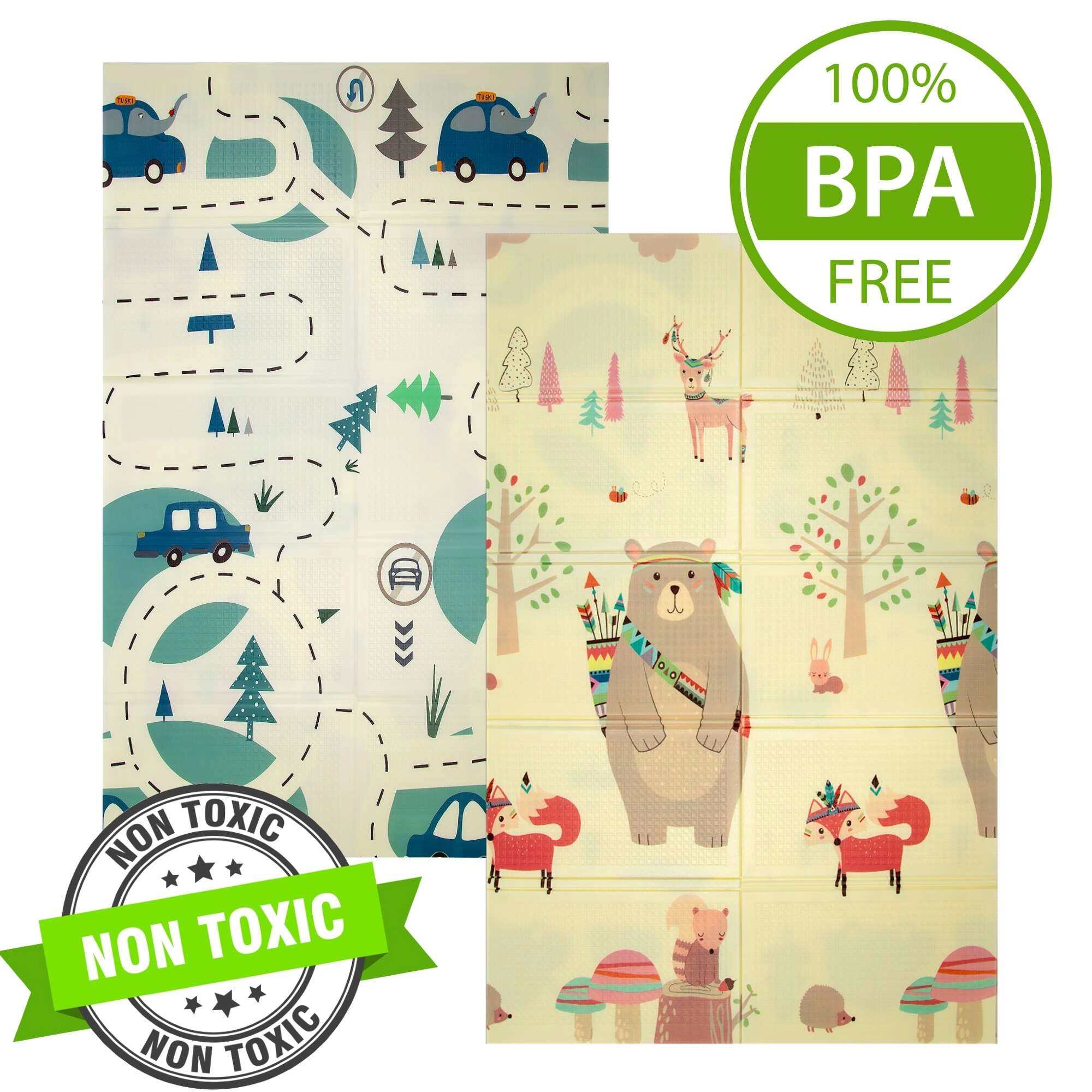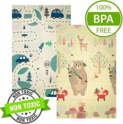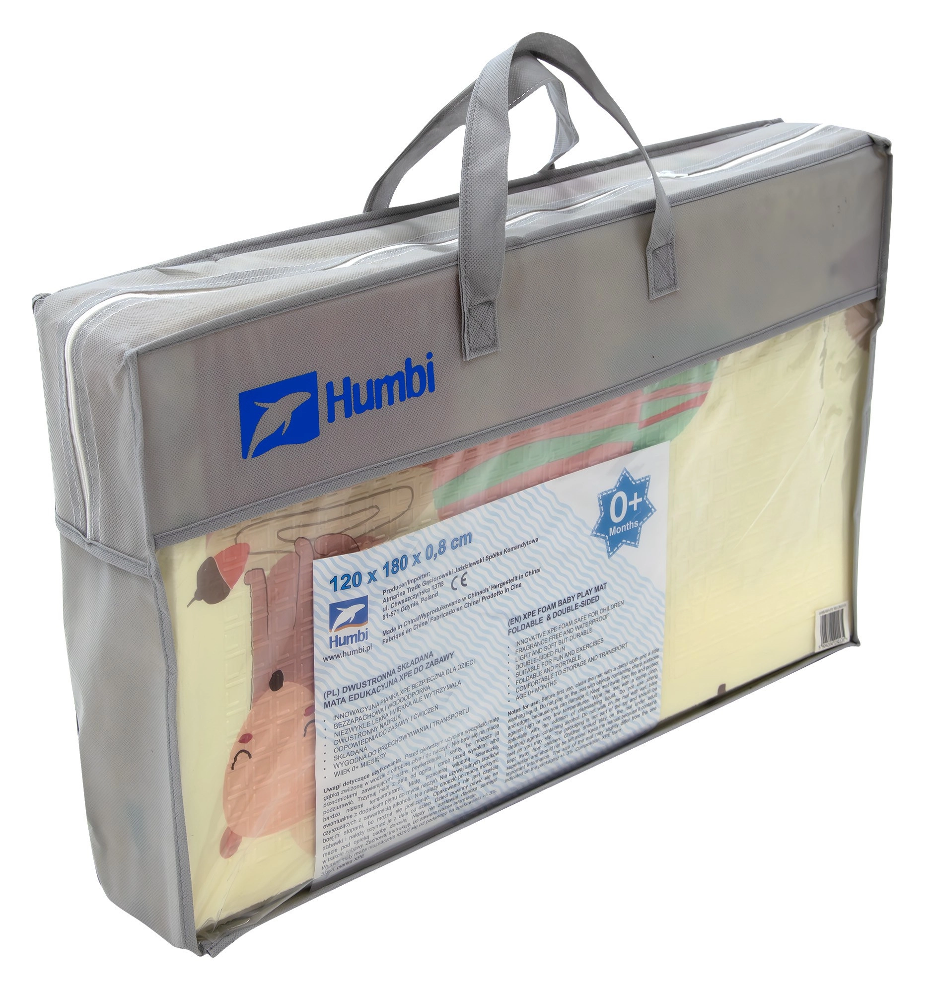 Praktisk og komfortabel HUMBI børnemåtte af kvalitets XPE-skum måler 120 × 180 cm og er 0,8 cm tyk for sikker leg, kravlen og de første skridt. Den er tosidet, foldbar, let og takket være den vandafvisende overflade let at holde ren. Indeholder ikke BPA, phthalater, PVC eller formamid, opfylder standarderne EN71 og REACH og er ideel til indendørs og udendørs brug.
