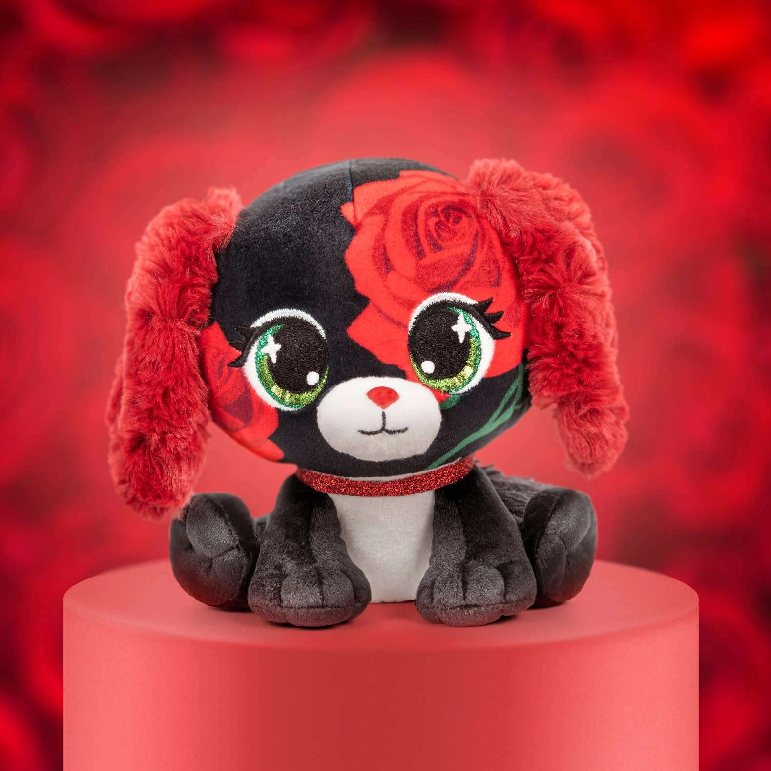 Vi præsenterer den stilfulde krammeven fra serien P.Lushes Pets – hunden Anna Dolce. Ved første øjekast imponerer hun med kontrastfyldt sort pels med røde roser, bløde røde ører og en nuttet snude. Det glitrende halsbånd giver legetøjet et elegant touch og gør den til en skøn gave til både små og større elskere af plysdyr.