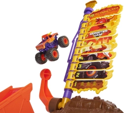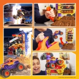 Sættet er ideelt til sololeg og konkurrencer med venner. Den gennemtænkte konstruktion med solid base i “dirt”-banestil, markante farver og autentisk Monster Jam-grafik understreger den realistiske oplevelse. Trucken i skala 1:64 med store dæk og høj undervogn håndterer landinger og næste angreb uden problemer.