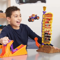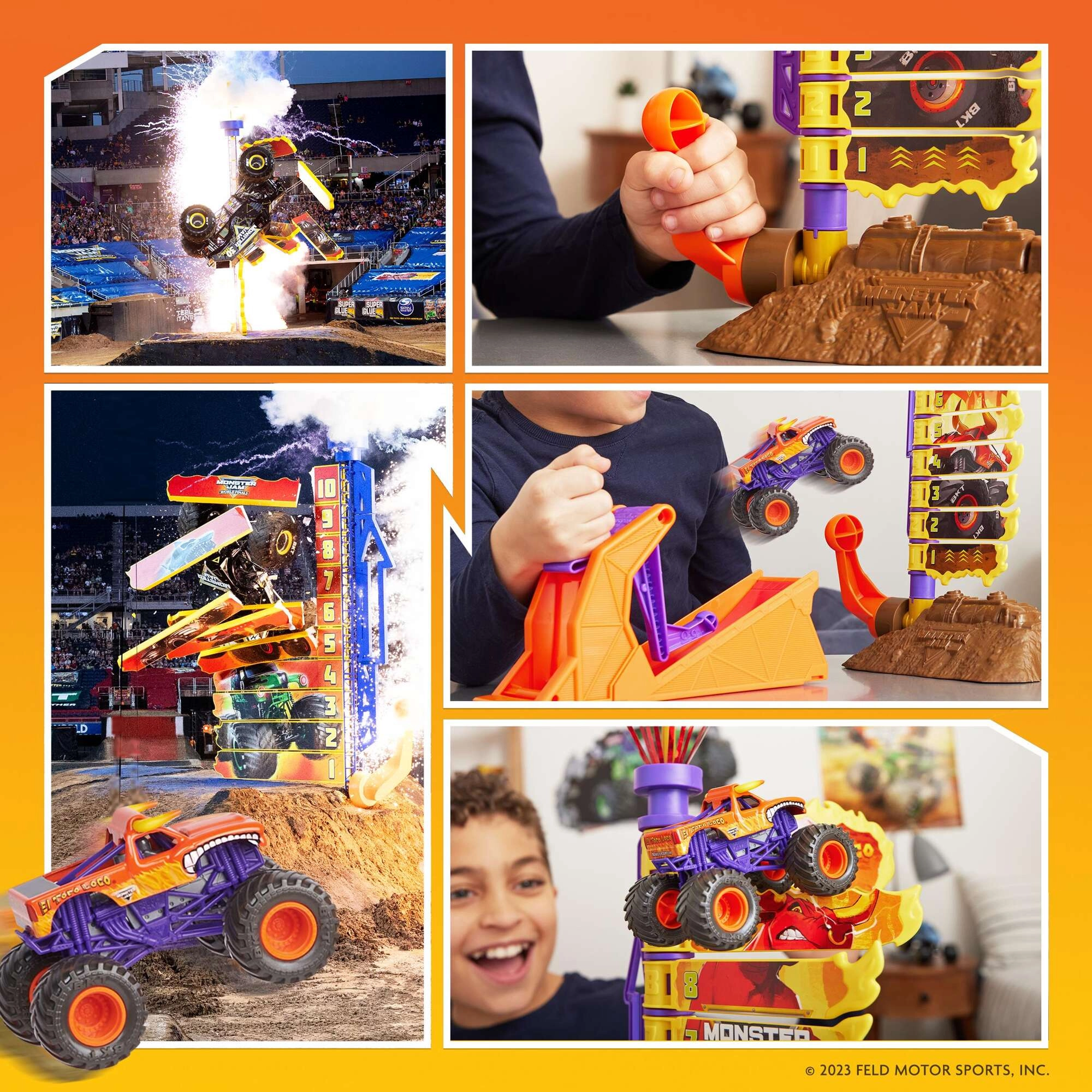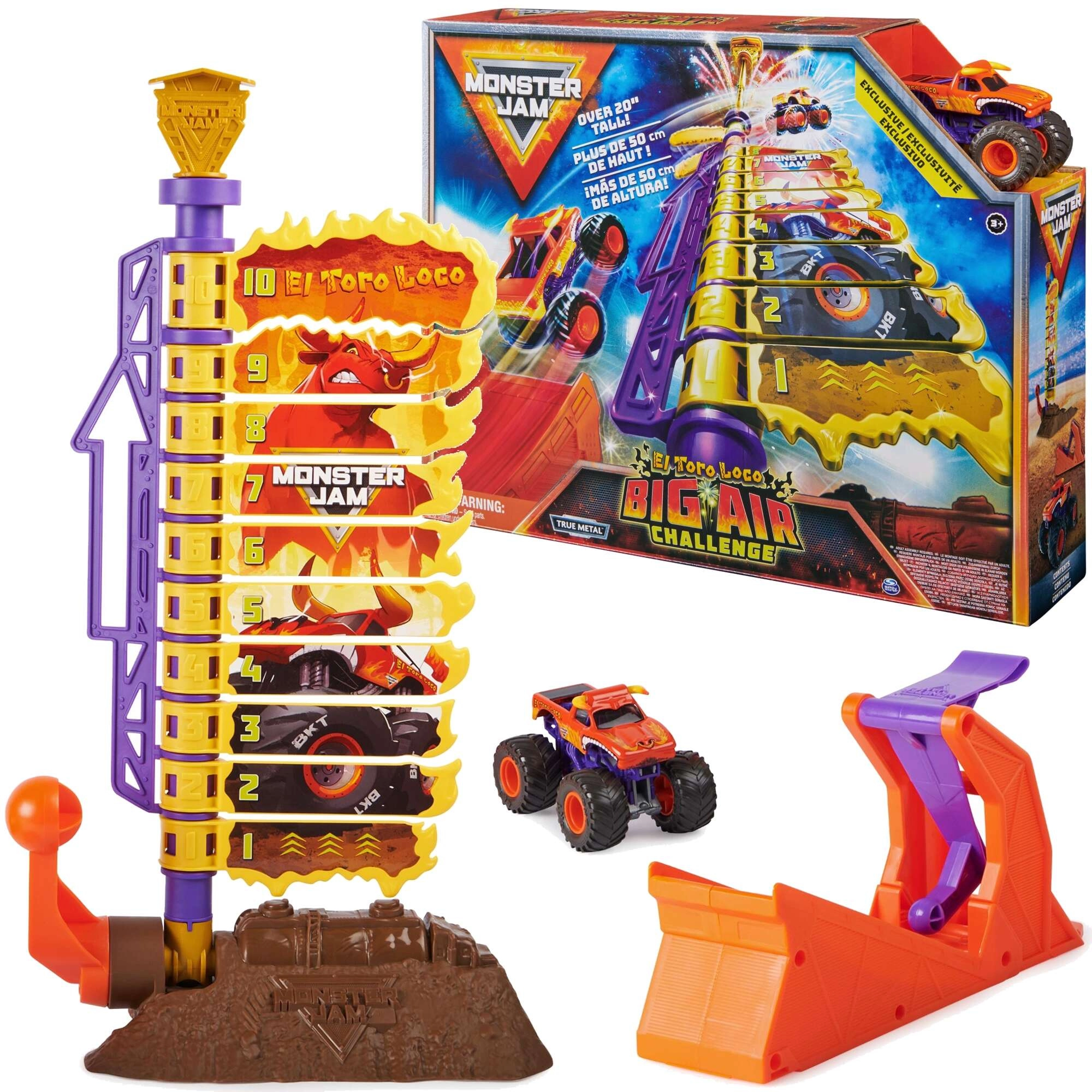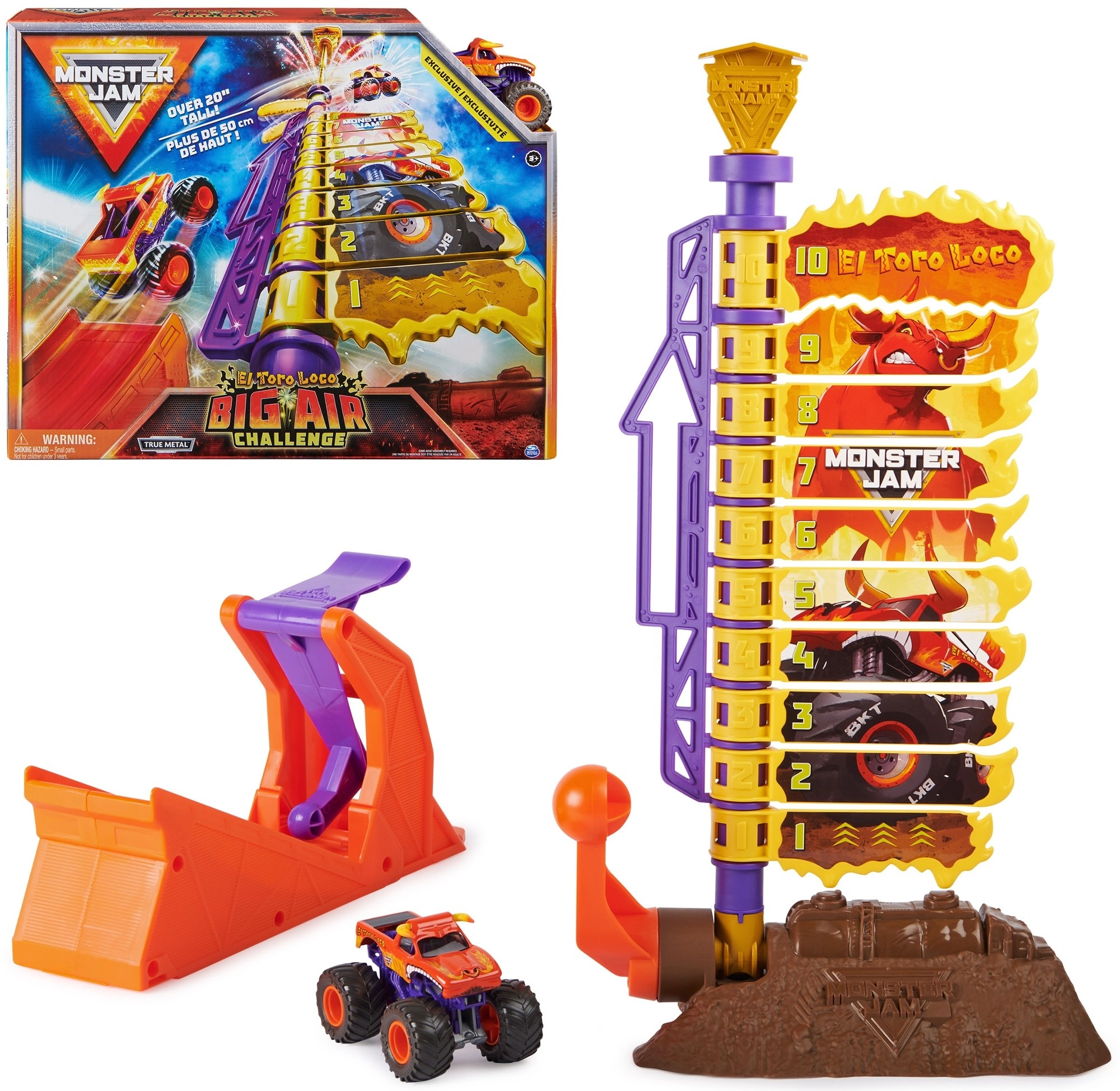 Byg affyreren, sigt og skyd din EL TORO LOCO-truck til vejrs. Scoretårnet med nummererede niveauer viser, hvor højt du nåede – når du toppen, belønnes du med et effektfuldt “fyrværkeri”. Takket være de 5 justerbare vinkler på affyreren skifter du nemt mellem højde og afstand på springet og forbedrer dine resultater.