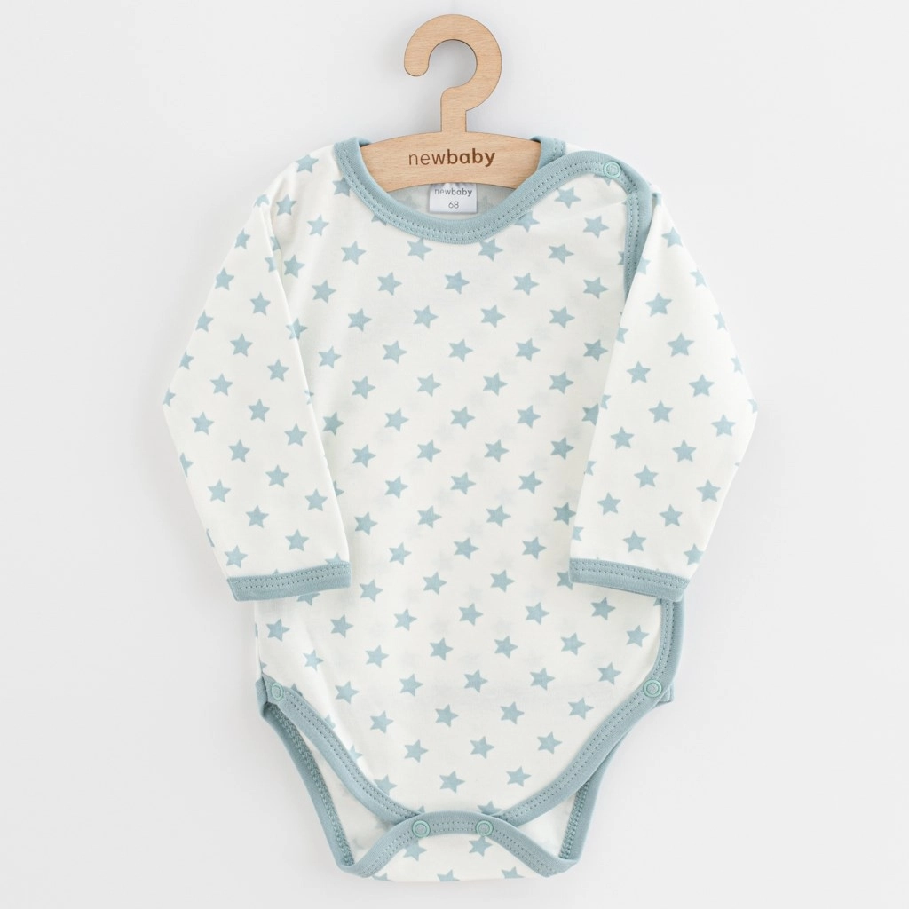 Praktisk sæt med tre baby heldragter NEW BABY Classic II i mint, med dinosaur og med stjerner, der glæder med blød kvalitet og nem påklædning. Gennemgående åbning med trykknapper hele vejen ned og mellem benene gør bleskift lettere, mens 100% bomuld sikrer blidhed og komfort for babyens sarte hud. Fordelagtig pakke med 3 stk til hverdag.<