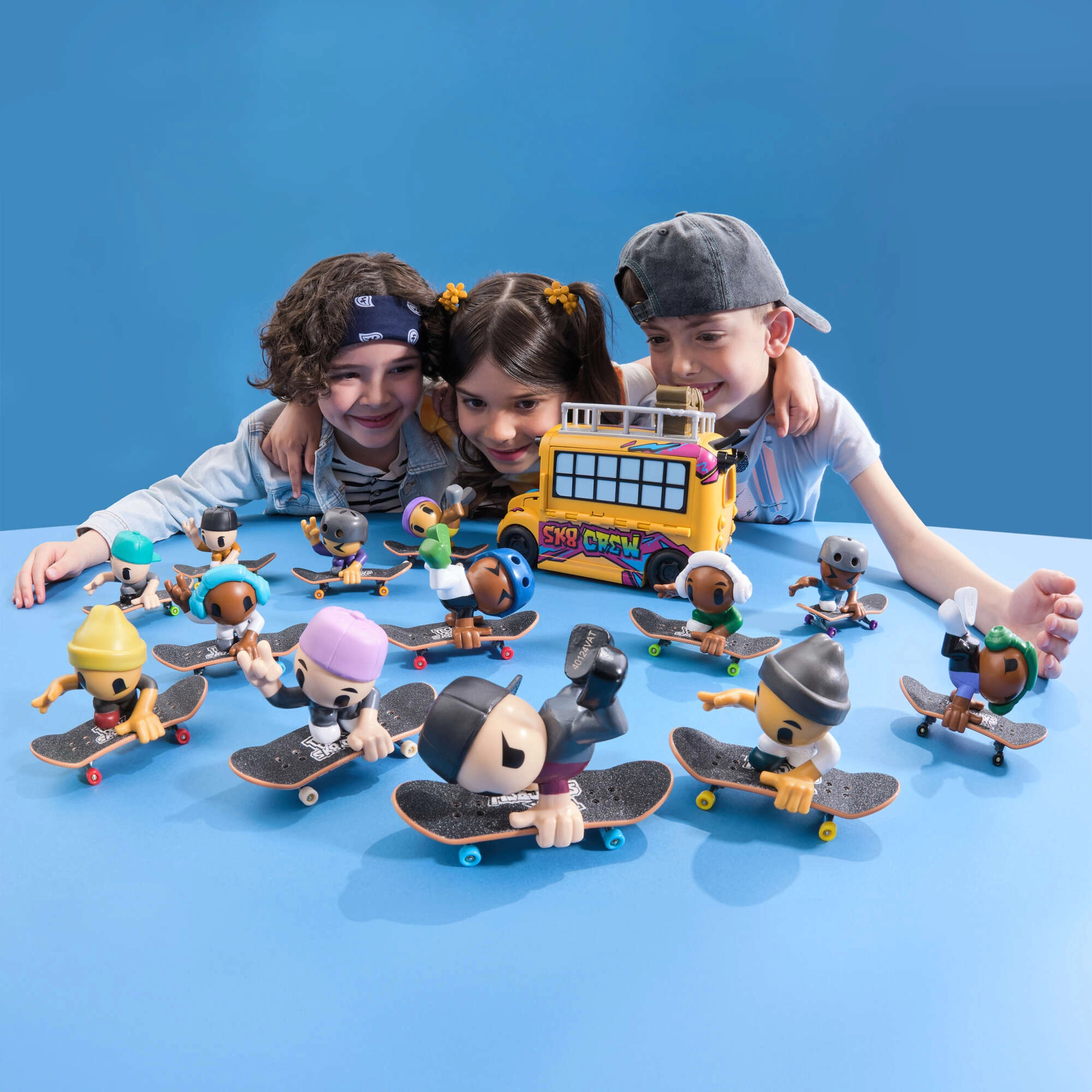 Tech Deck Sk8 Crew serie 1 leverer en realistisk fingerboarding-oplevelse. To kvalitets-fingerboards med detaljeret grafik og mini-trucks suppleres af to figurer, som kan fastgøres til brædderne – det giver et mere sikkert greb og gør det lettere at lære nye kombinationer. Perfekt til både begyndere og øvede.
