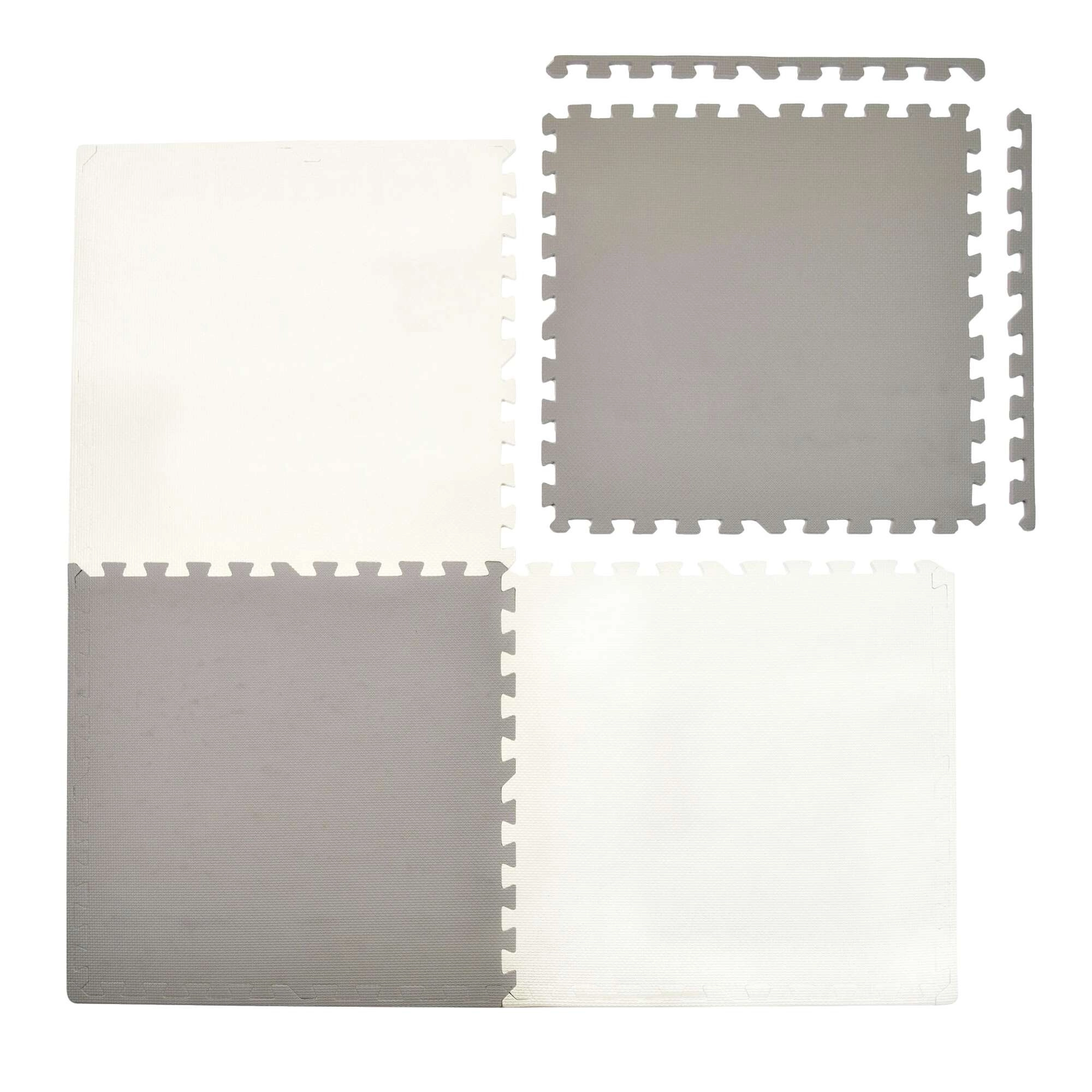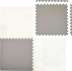 Praktisk børneunderlag af EVA-skum bestående af store puslespilsdele skaber en blød, sikker og skridsikker overflade til leg, kravlen og de første skridt. Sættet med 4 fliser 60 × 60 cm med kanter samles nemt til målene 120 × 120 × 1 cm, og fliserne kan forbindes og udvides med flere sæt. Underlaget er vandtæt, isolerer mod kulde fra gulvet, dæmper stød og er let at rengøre ved aftørring.