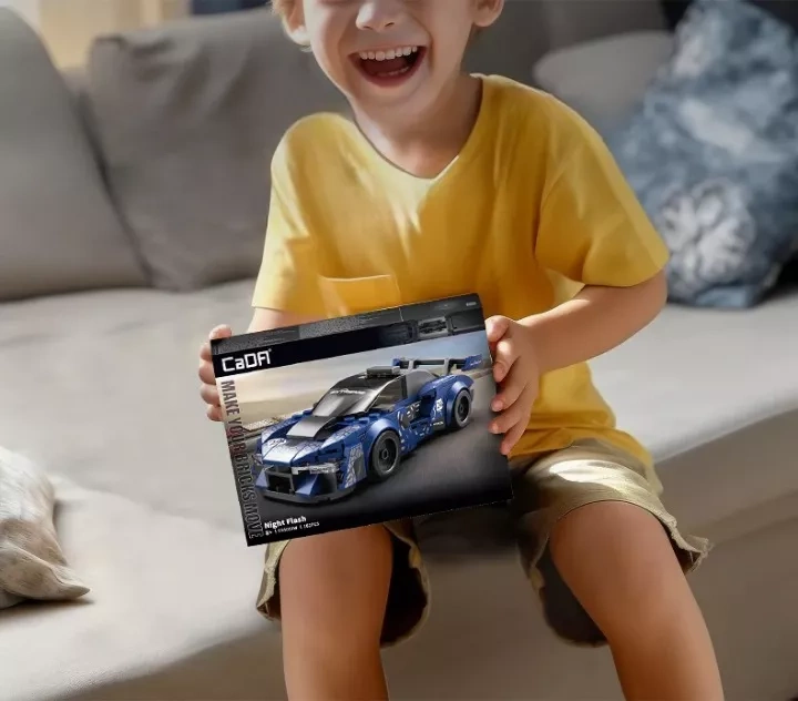 Den blå bybil CaDA Night Flash vil glæde både børn og voksne byggere. Præcist udførte detaljer i karrosseri og interiør, stærke farver og funktionelle elementer sikrer mange timers kreativ leg og dynamiske løb på gulvet.