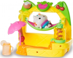 - Balkonramme med hængekøje, Cakey-figur, ananasbod, kop, parasol, frugt og andet tilbehør, hemmelig æske, vejledning