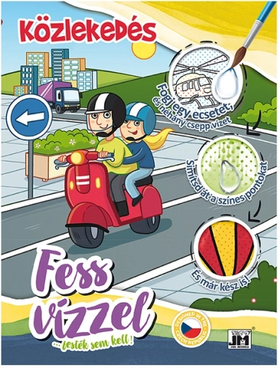 Oplev magien ved at male med vand! Sættet Mal med vand – Transport i ungarsk udgave tilbyder 23 detaljerede billeder af biler, tog, skibe og andre transportmidler. Fugt blot penslen og stryg over fladerne – farverne kommer frem af sig selv. Ingen spildte farver eller pletter, kun ren skaberglæde.