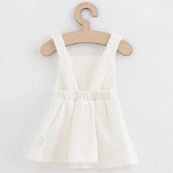Opdag den elegante og komfortable overall-kjole NEW BABY Laura i hvid, som udmærker sig ved sin fine strikkestruktur og kvalitetsforarbejdning. Ren bomuld er åndbar, blid mod børnehud og holder formen flot.