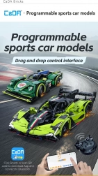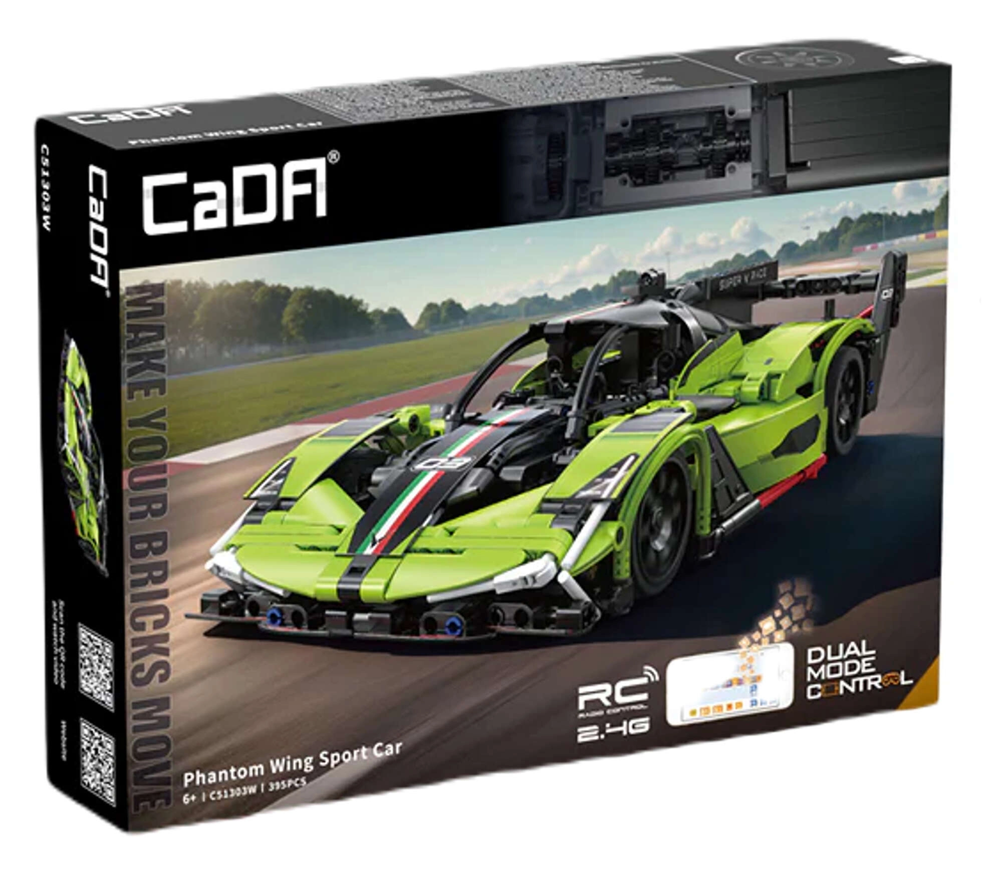 Byg din egen racerbil og kør ud på banen med byggesættet CaDA fra serien Make Your Bricks Move. Sættet med 395 dele i skala 1:14 tilbyder 2,4 GHz fjernstyring samt styring via Bluetooth-app, rækkevidde over 25 m og hastighed op til 3,8 km/t. Fantastisk til udvikling af koordinationsevner og mange timers kreativ leg.