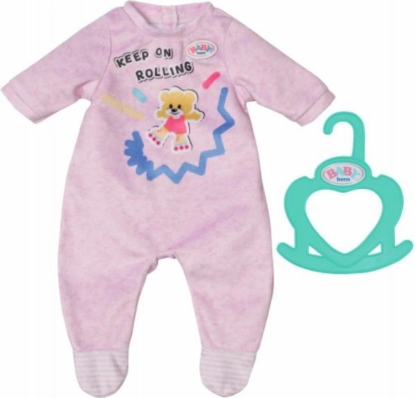 Lad din dukke slappe af med stil. Denne bløde BABY BORN Little heldragt 36 cm i en sart lyserød farve har et legende “Keep on rolling”-print med en bamse og integrerede strømper, så dukken aldrig fryser om fødderne. Takket være det løsere snit kan selv små børn nemt tage den på og af.