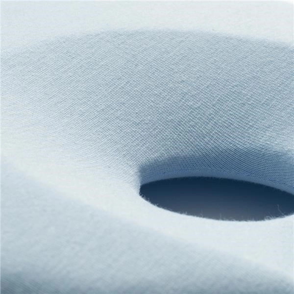 Puden er designet til at støtte korrekt formning af barnets hoved fra fødslen til 6 måneder. Ergonomisk profilering reducerer punkttrykket mod underlaget, hvilket bidrager til en jævn vægtfordeling og komfortabel søvn. Det bløde og åndbare betræk af bomuld med elastan er behageligt at røre ved og skånsomt mod følsom babyhud.
