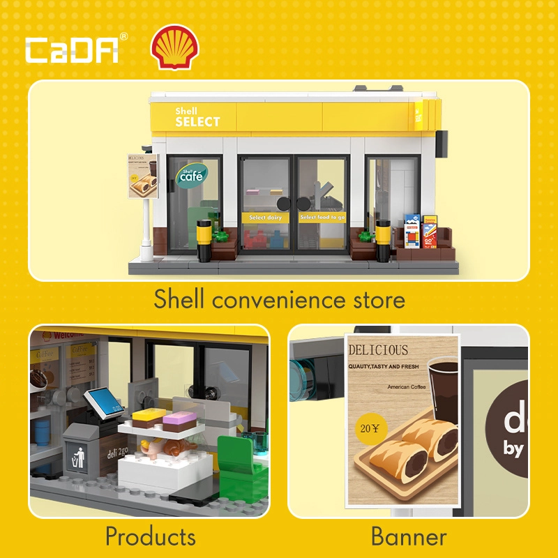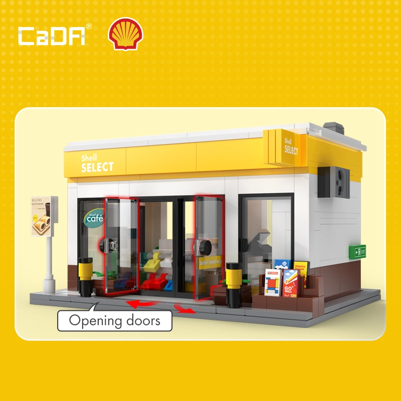 CaDA-byggesættet tilbyder en detaljeret etplans mini SHELL-butik med realistiske elementer som skydende/åbningsbare døre, montrer, plakater og interiørudstyr. Ideel til børn fra 8 år og voksne byggefans, der elsker præcision og en stilfuld displaymodel.