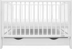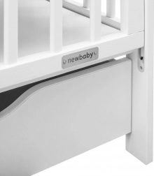 New Baby Lilly-sengen kombinerer moderne design, holdbare materialer og gennemtænkte funktioner for komfort til både forældre og baby. Den nedfældelige side med et nyt, sikkert system muliggør betjenning med én hånd. Den ventilerede lamelbund i tre højdeniveauer fremmer korrekt luftcirkulation omkring madrassen og bidrager til en hygiejnisk søvn.